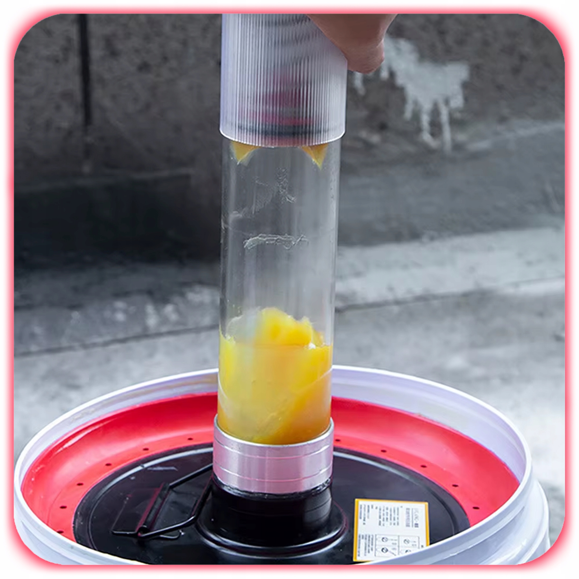 Pasuje do okrągłych pojemników o średnicy od 24 do 29 cm, co sprawia, że możesz używać go z większością dostępnych na rynku wiader ze smarem.
