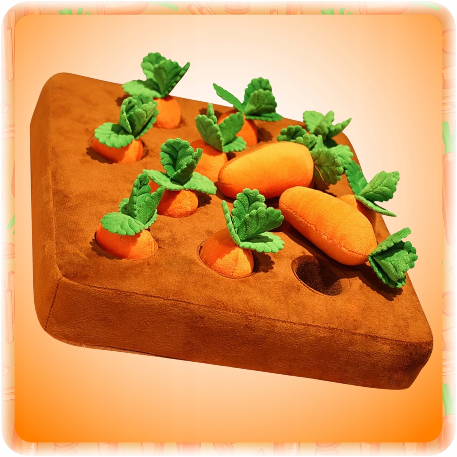 Wyciągnij pojedyncze marchewki, włóż do nich ulubione przysmaki Twojego psa i wsadź je z powrotem do maty. Dzięki temu pies będzie musiał użyć węchu i zmysłów, aby znaleźć nagrodę.