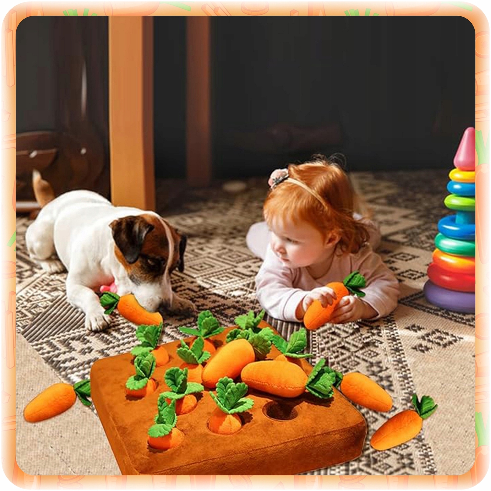 Szukanie ukrytych smakołyków w marchewkach to doskonały sposób na rozwijanie psiego węchu i zdolności logicznego myślenia.