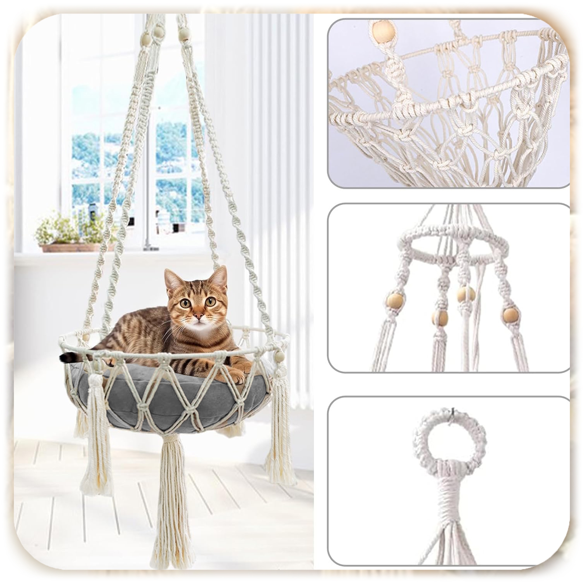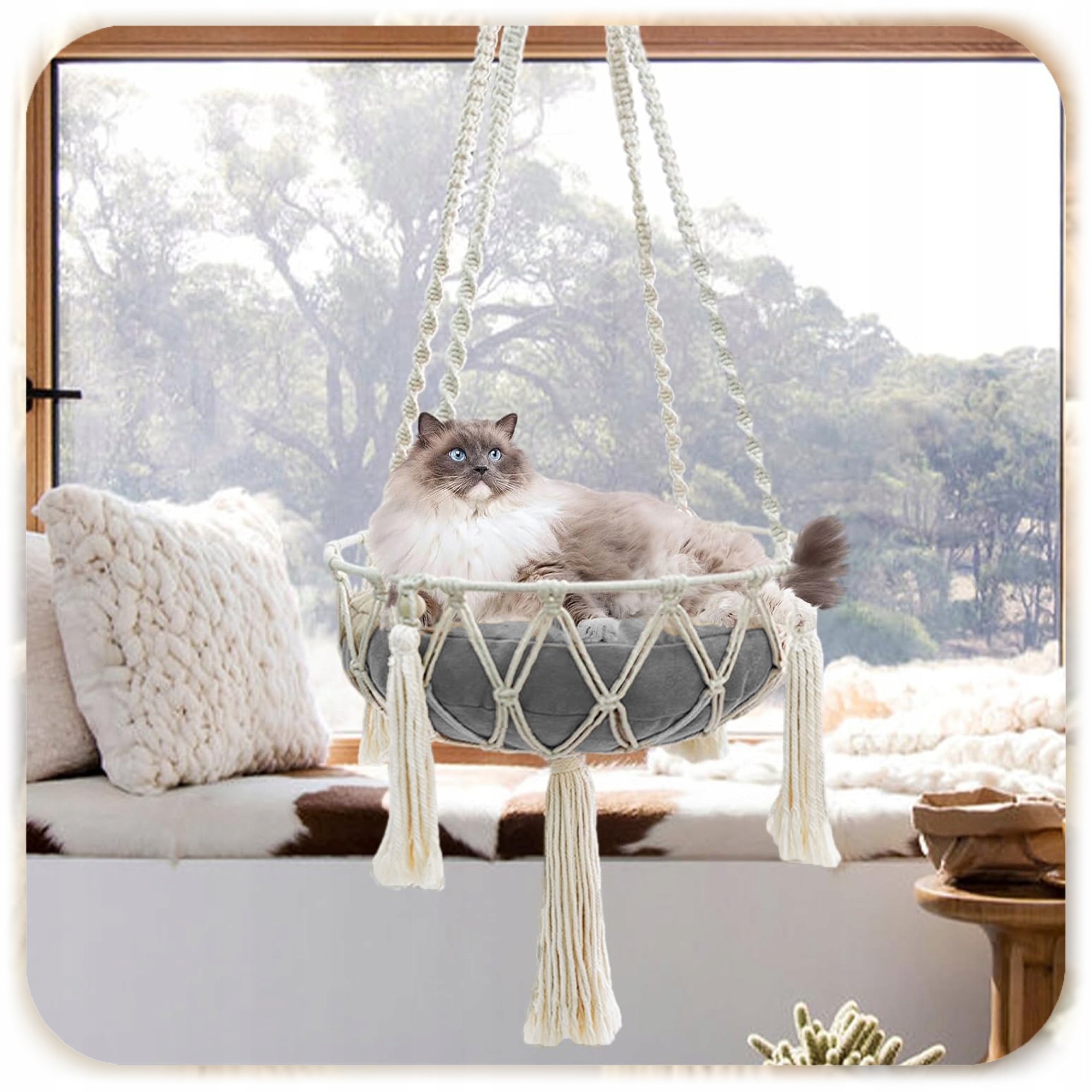 Konstrukcja w formie kokonu zapewnia kotu komfort i poczucie bezpieczeństwa. W zestawie znajduje się gruba, miękka szara poduszka, która idealnie wypełnia dno hamaka. Dzięki temu kot leży stabilnie, a legowisko jest wyjątkowo wygodne.