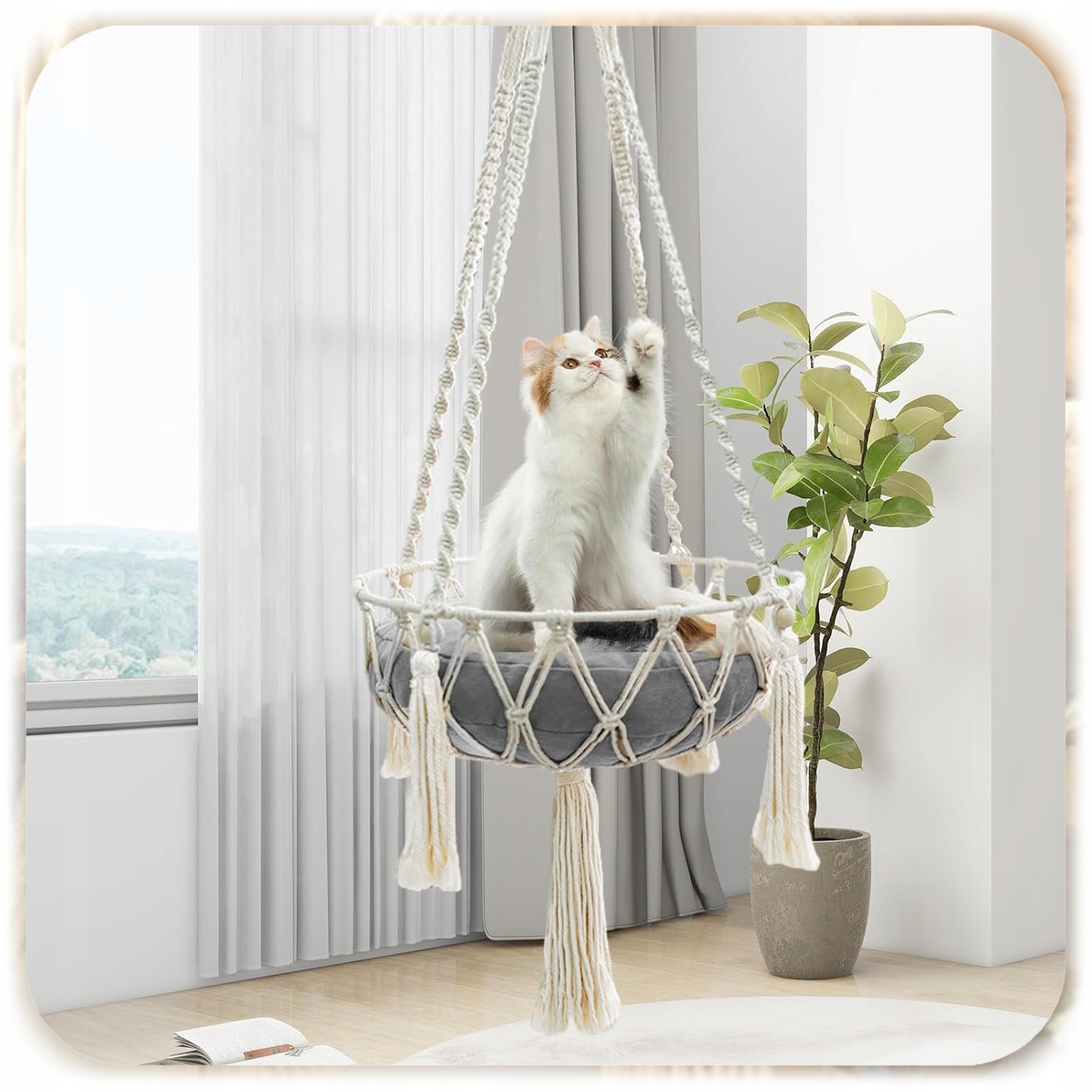 ✅ Tak – przy poprawnym zawieszeniu na solidnym haku jest w pełni bezpieczny dla kota.
