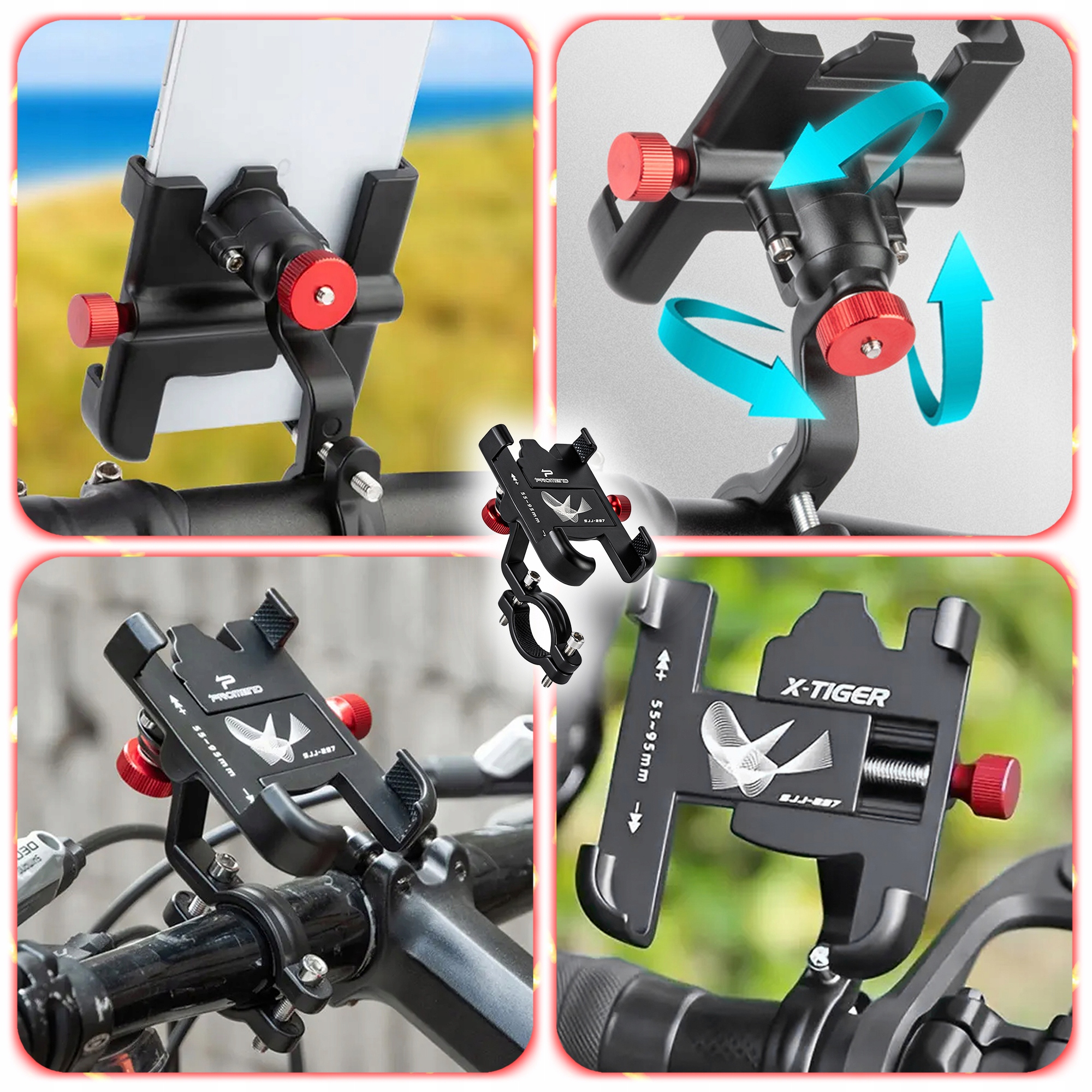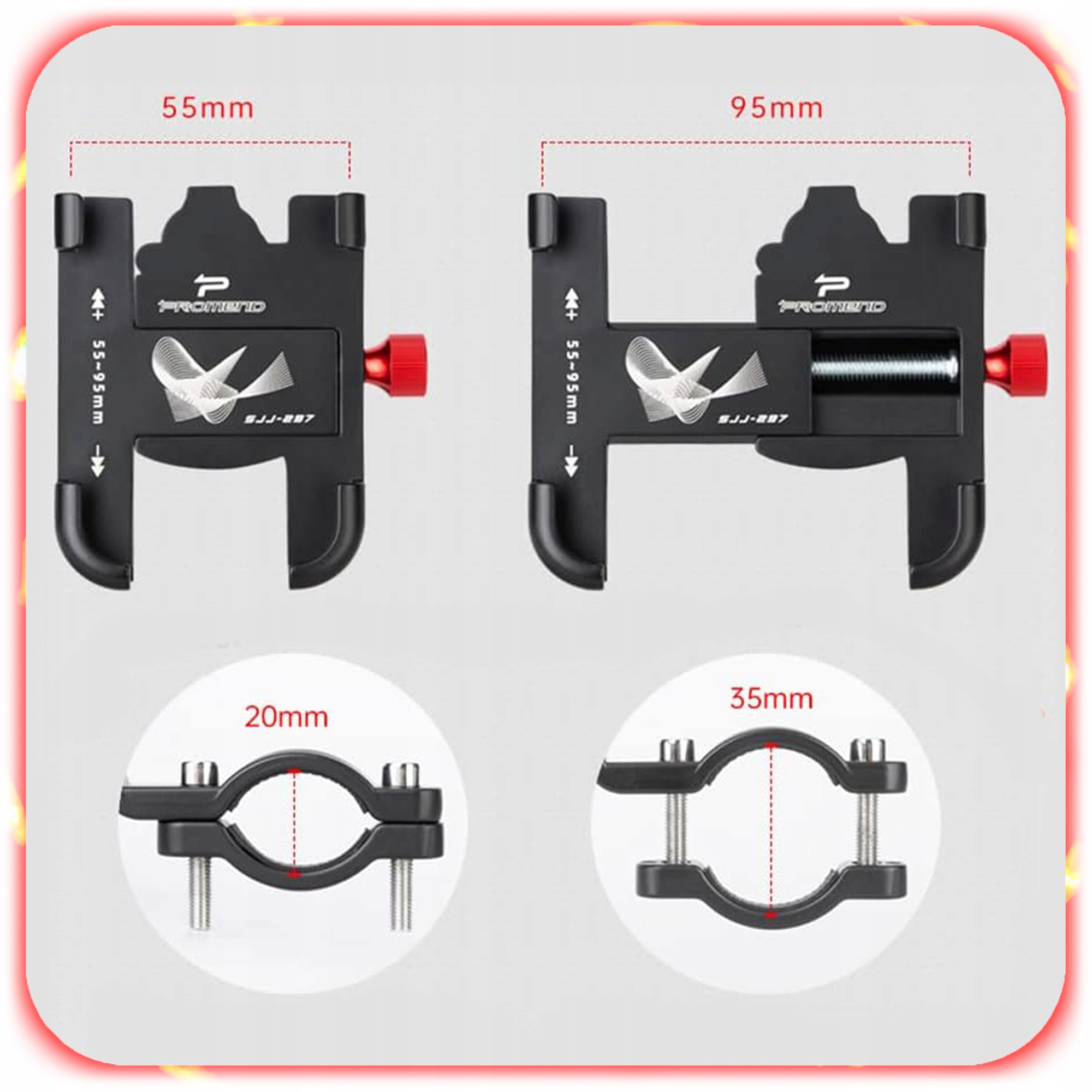 Pasuje do smartfonów o szerokości 55–95 mm i kierownic 20–35 mm.