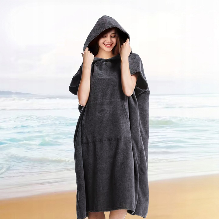 To ponczo z miękkiej i chłonnej mikrofibry zapewnia pełną wygodę, prywatność i ochronę przed chłodem. Idealne nad morze, jezioro, basen, do kampera lub po treningu! 🌊