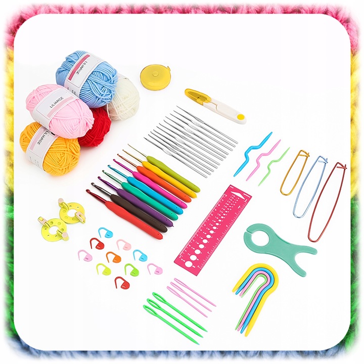 W zestawie znajdziesz nie tylko szydełka i włóczki, ale również przydatne narzędzia, które ułatwią Twoją pracę: