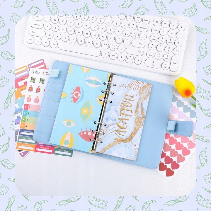 ⭐ ZESTAW: notatnik, kartki na notatki, naklejki, przekładki na pieniądze