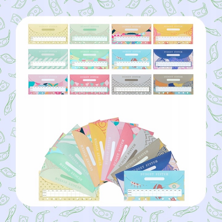 ✅ Tak! W zestawie znajdziesz 12 kartek–kopert, które idealnie nadają się do przechowywania pieniędzy zgodnie z systemem budżetowania „kopertowego”.