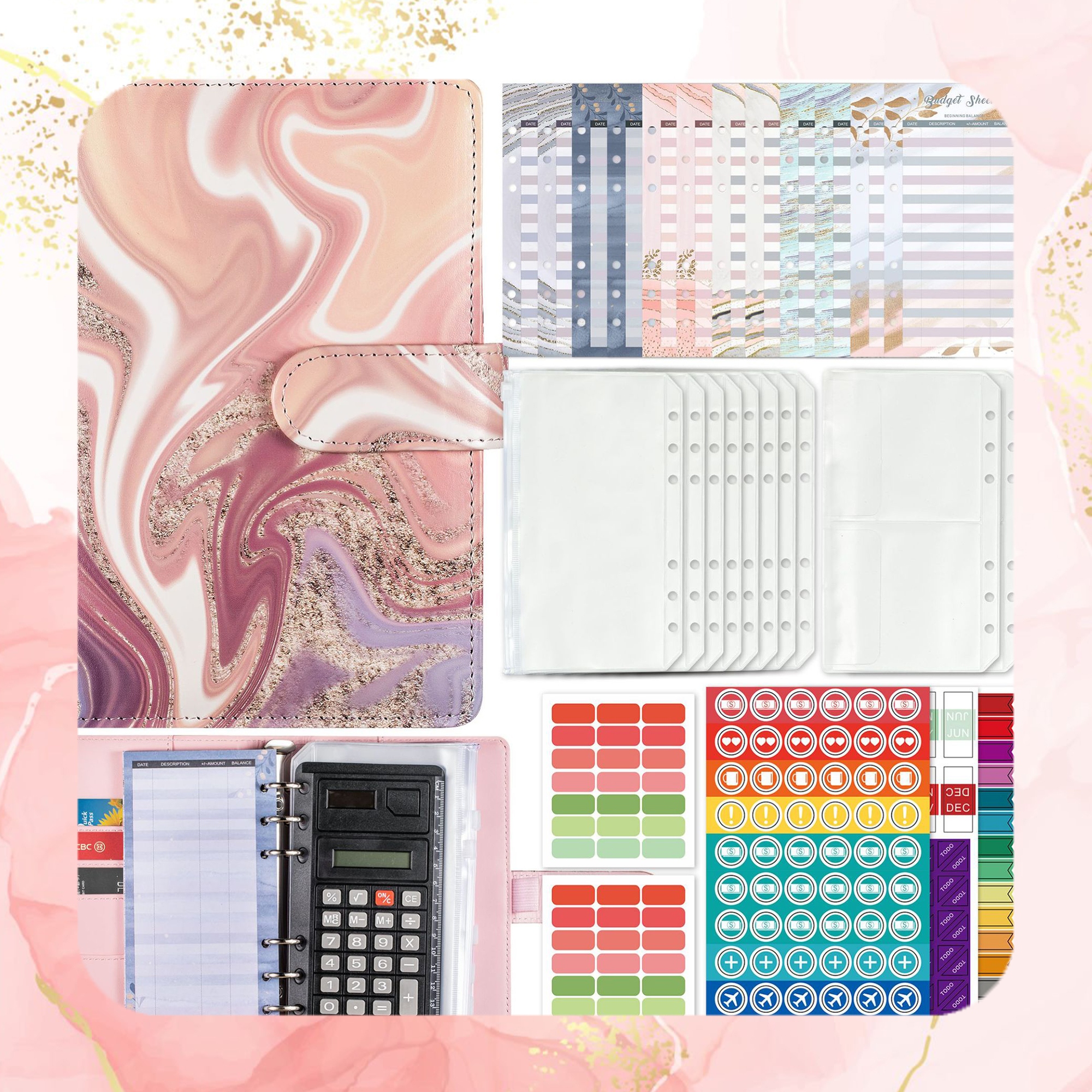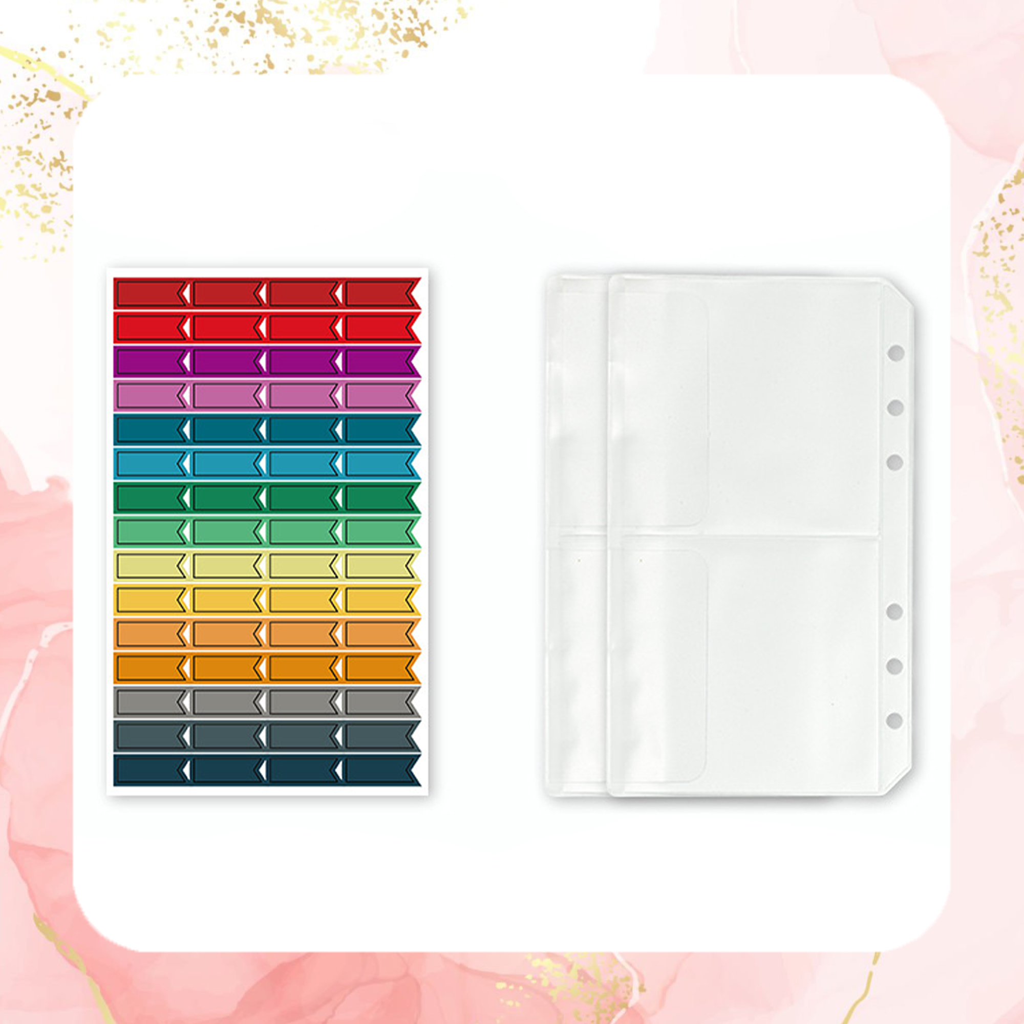 ✅ W zestawie znajdziesz: 12 przezroczystych kieszonek na pieniądze, kolorowe indeksy, naklejki, etykiety, 12 kopert oraz wkładki tematyczne.