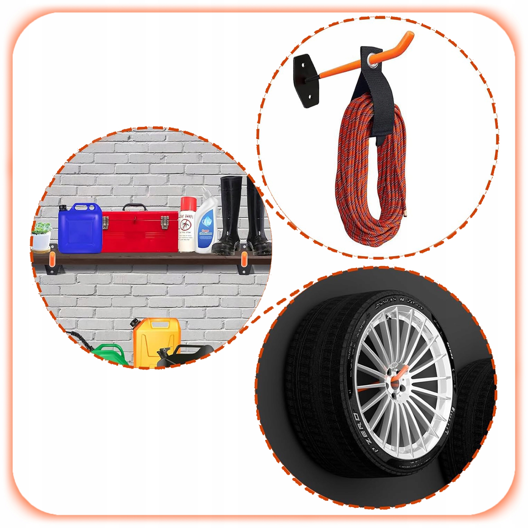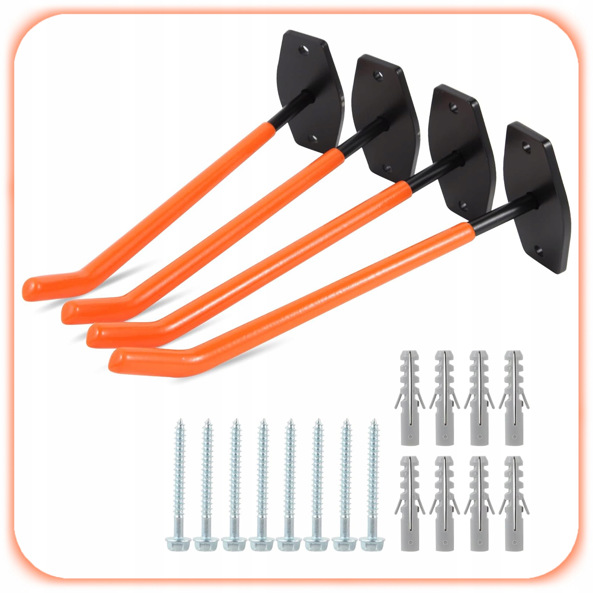 Ten zestaw 8 stalowych wieszaków ściennych to praktyczne rozwiązanie dla osób, które chcą raz na dobre uporządkować garaż, warsztat lub pomieszczenie techniczne.