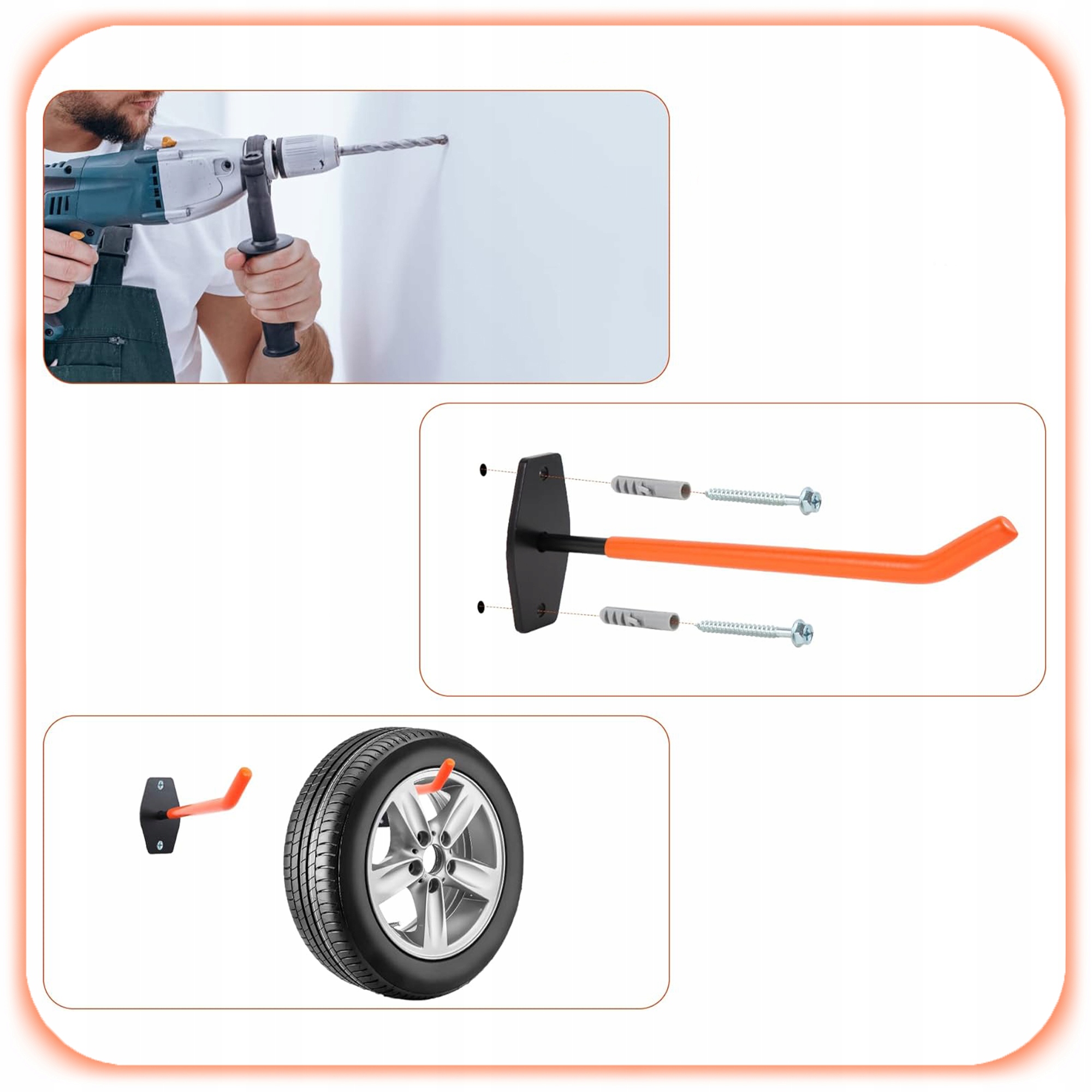 Uchwyty pozwalają bezpiecznie przechowywać ciężki sprzęt na ścianie, uwalniając cenną przestrzeń na podłodze.