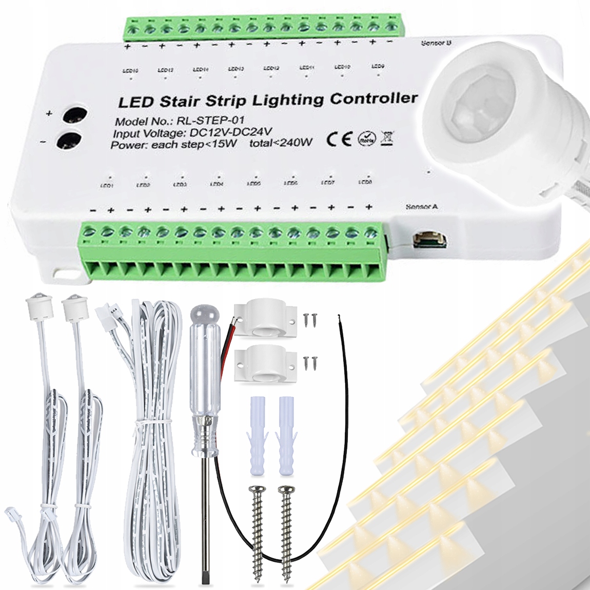 Zyskaj spektakularne, kaskadowe podświetlenie schodów, które włącza się automatycznie, dokładnie wtedy, gdy go potrzebujesz. Sterownik LED 16-kanałowy tworzy płynny efekt rozświetlania kolejnych stopni, nadając wnętrzu elegancji, bezpieczeństwa i nowoczesnego charakteru.