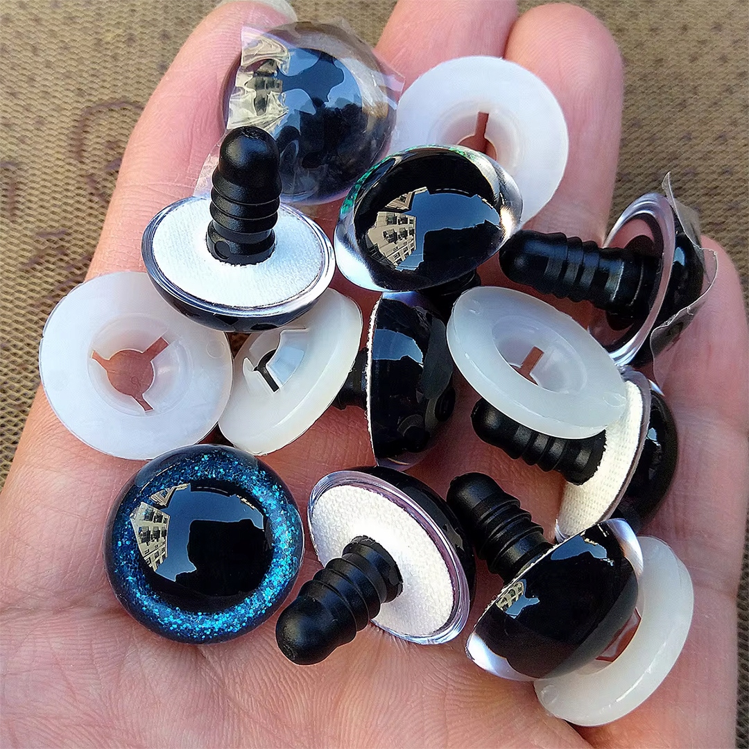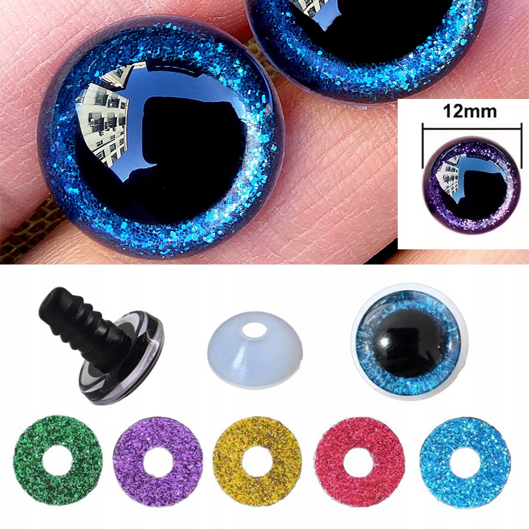 Brokatowe krążki umieszczane pod soczewką nadają oczom pięknego błysku – idealne do bajkowych maskotek i kreatywnych projektów.