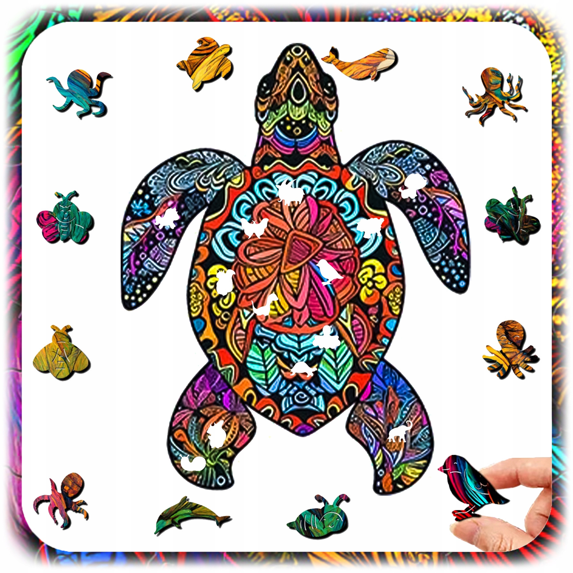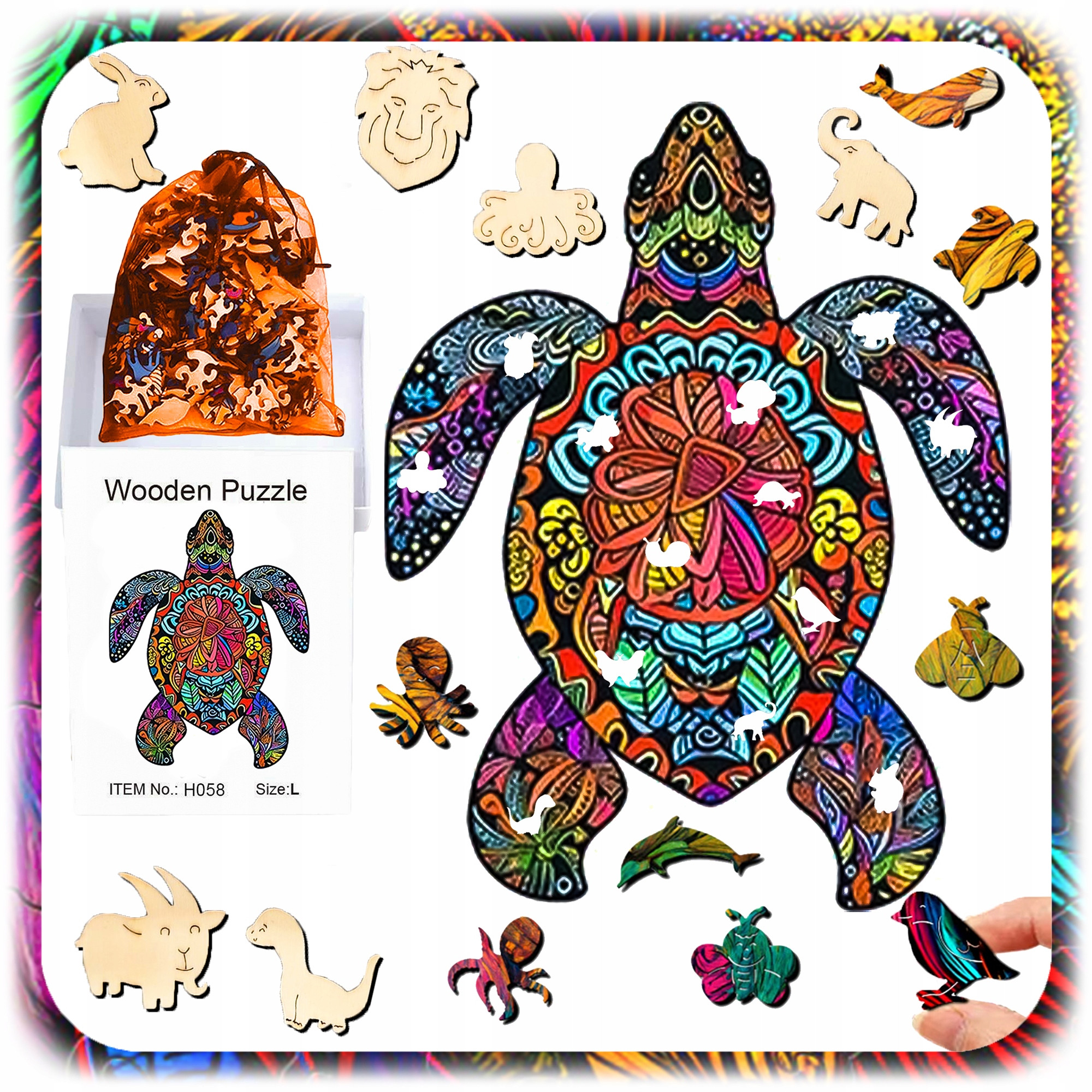 ⭕ Szukasz kreatywnej i wartościowej zabawki dla dziecka? Drewniane puzzle z motywem żółwia to doskonały sposób na rozwój, naukę i relaks w jednym!
