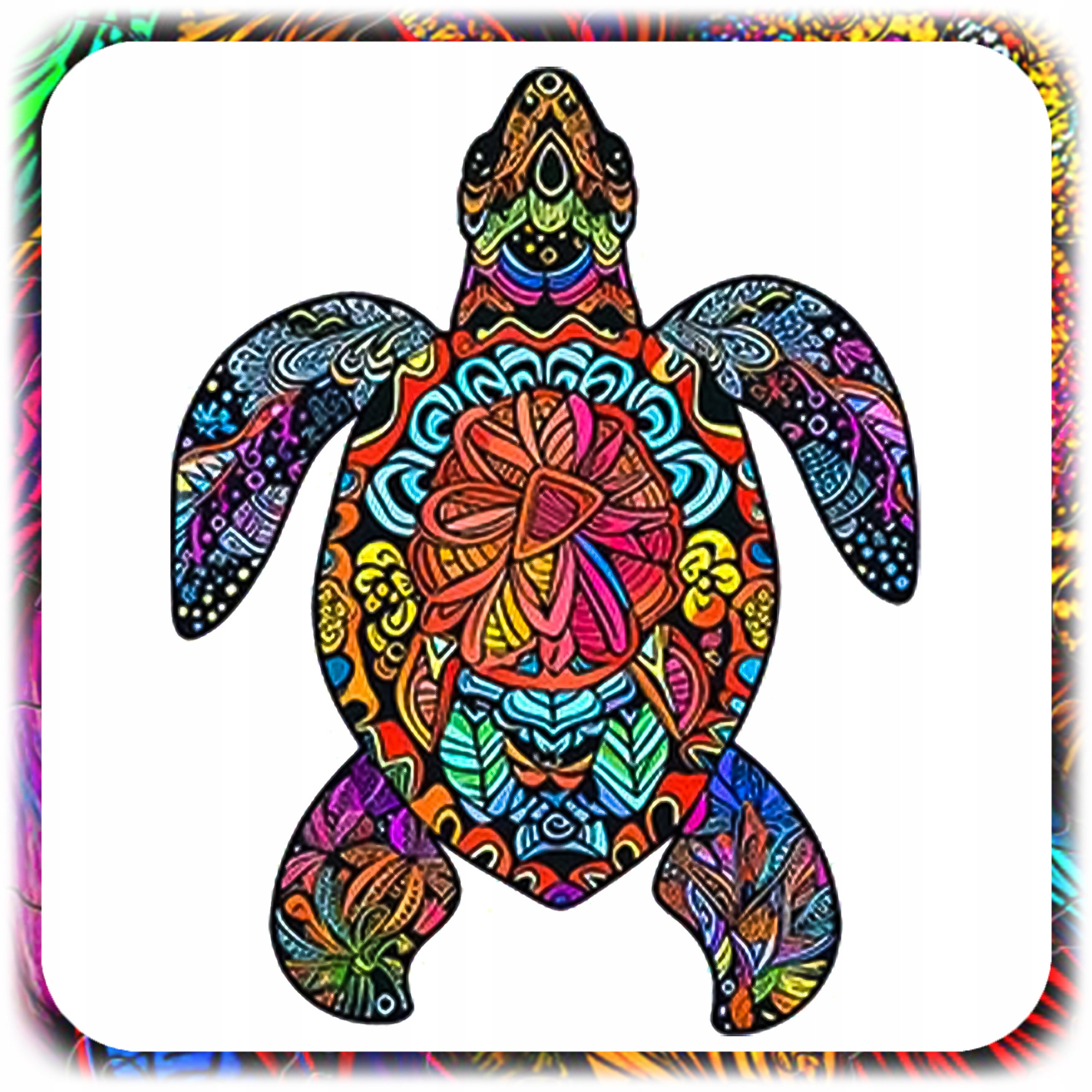 ✅ Wzór: Dwustronny – żółw + kształty zwierząt