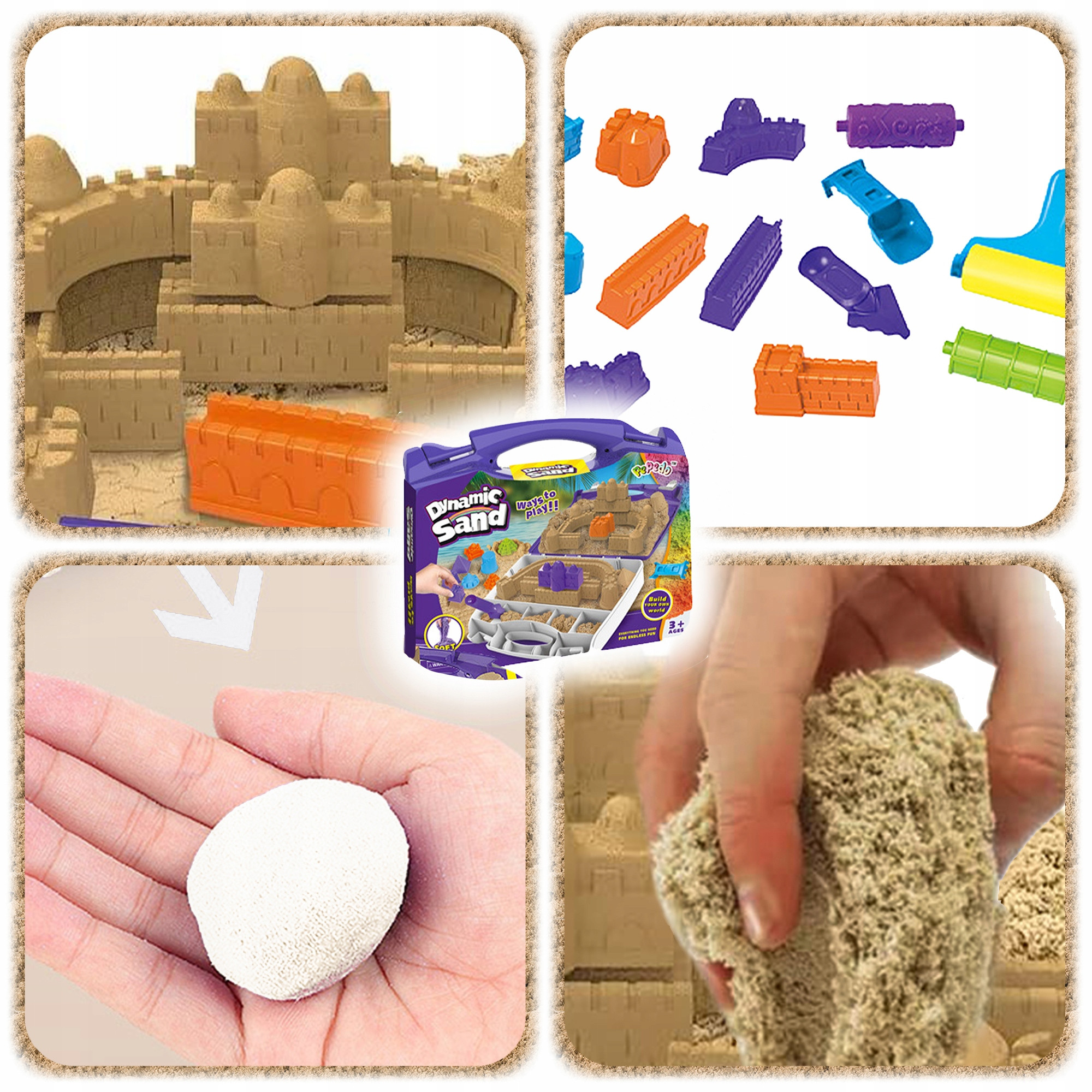 Plastyczny, miękki i bezpieczny – nie rozsypuje się jak zwykły piasek i nie przykleja się do rąk. Doskonały do budowania zamków, murów i całych miast!