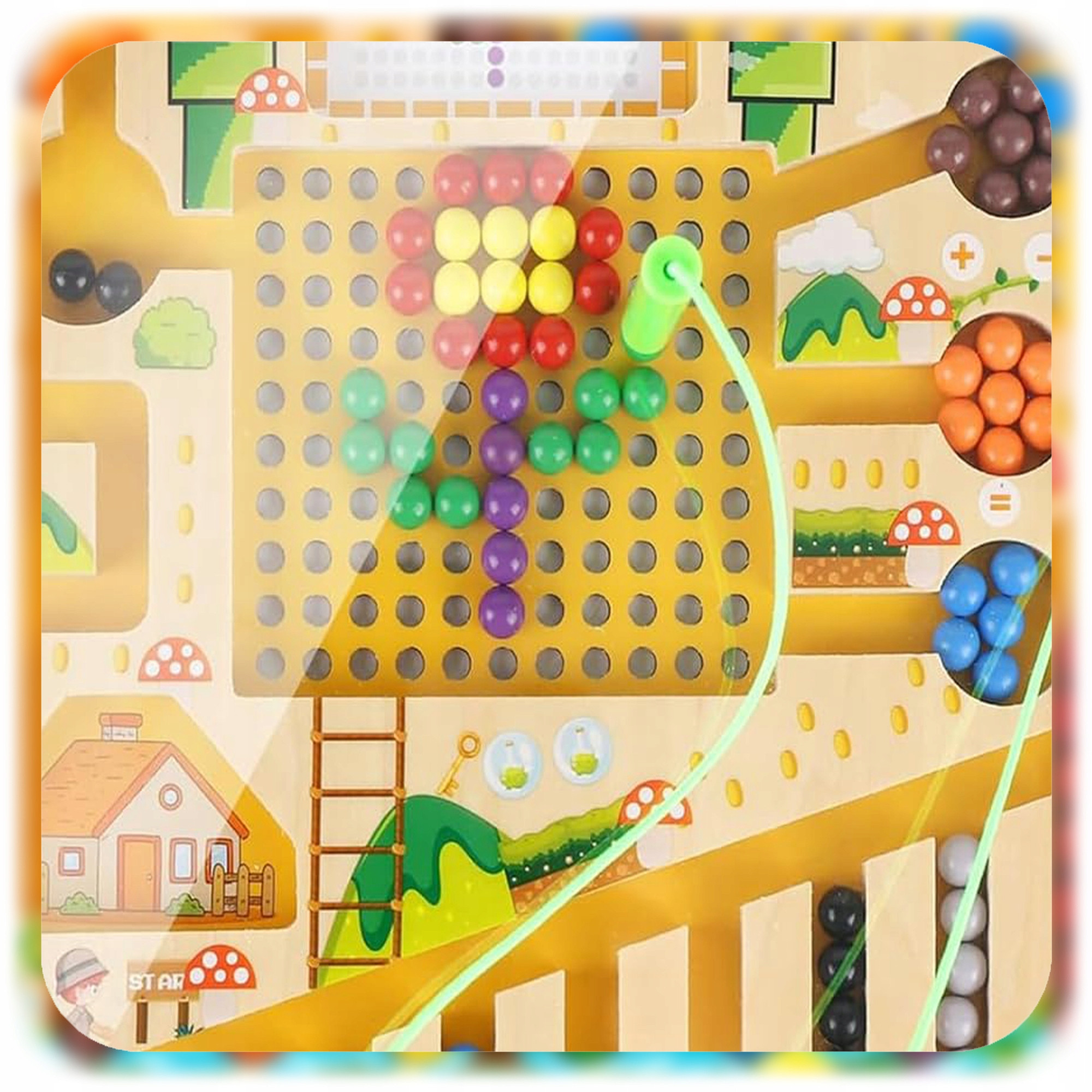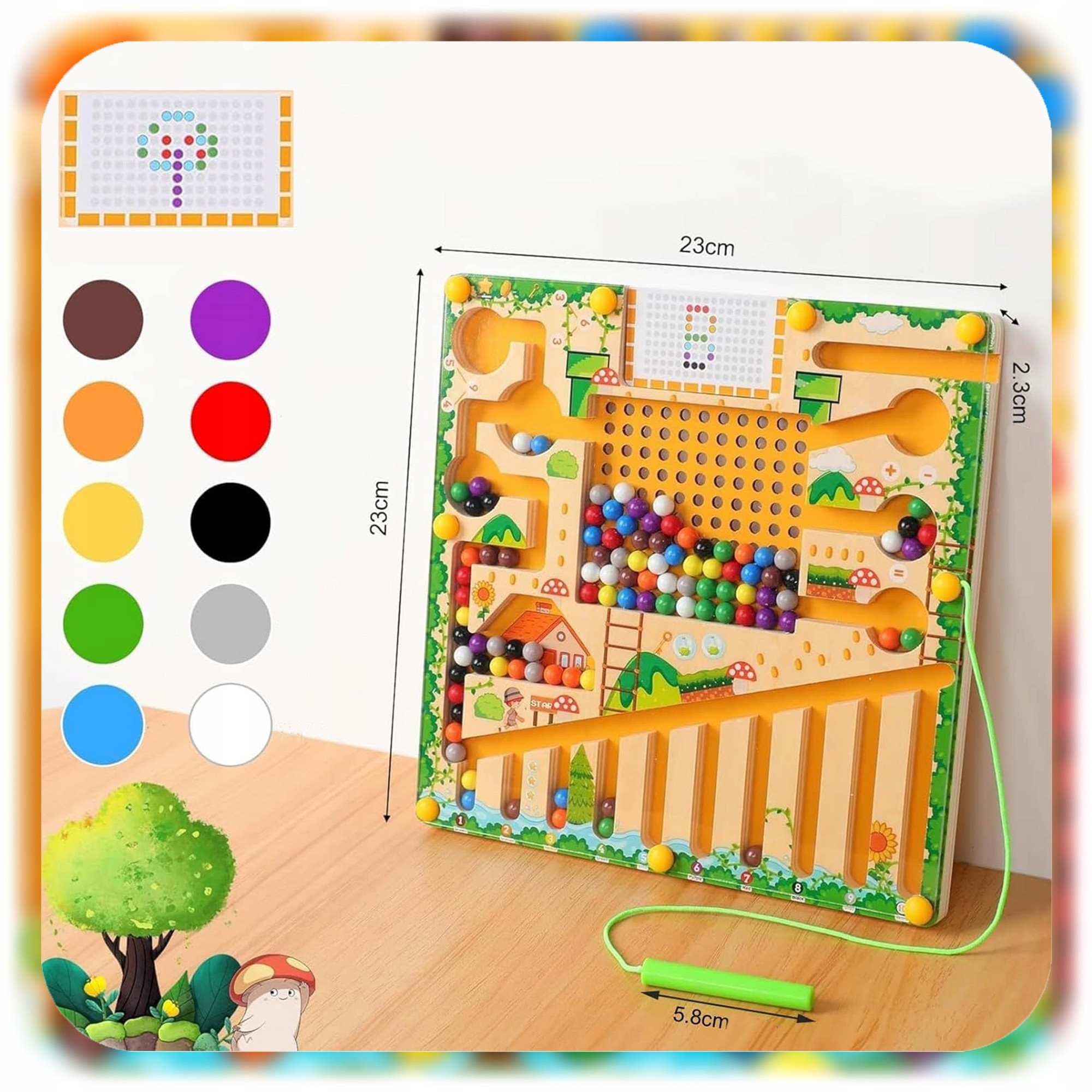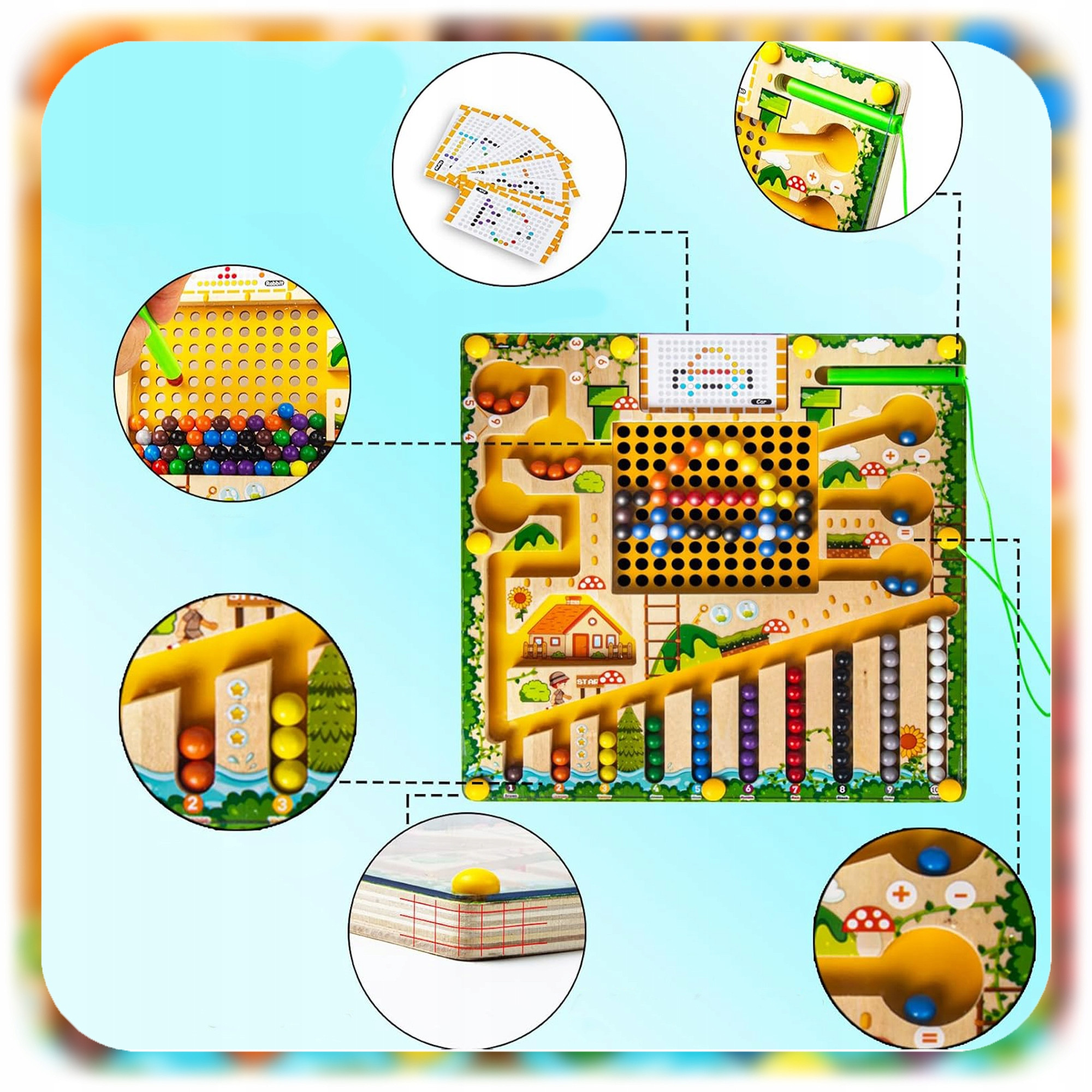 ✅ Labirynt wykonano z drewna i bezpiecznego tworzywa sztucznego (osłona), a kulki są magnetyczne. Wszystkie materiały są nietoksyczne i przyjazne dzieciom.