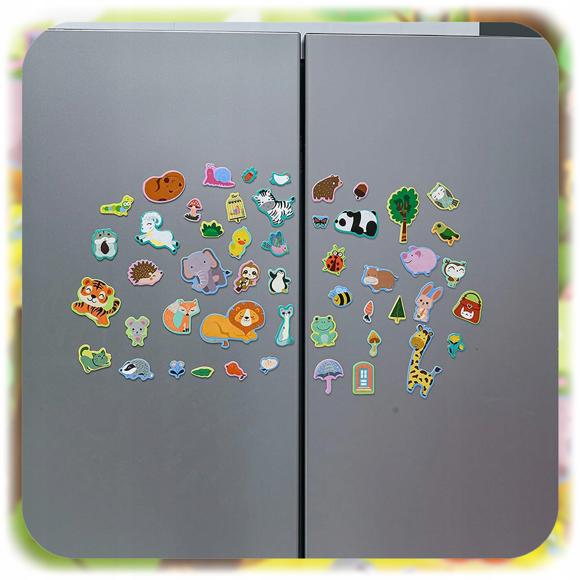 W zestawie znajduje się aż 50 kolorowych magnesów, w tym: