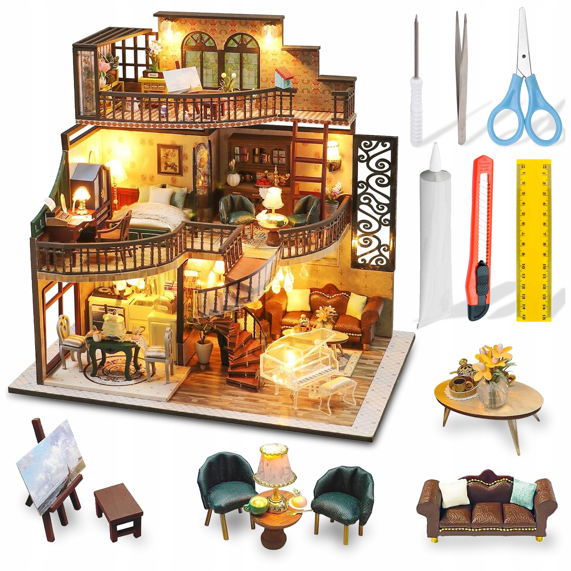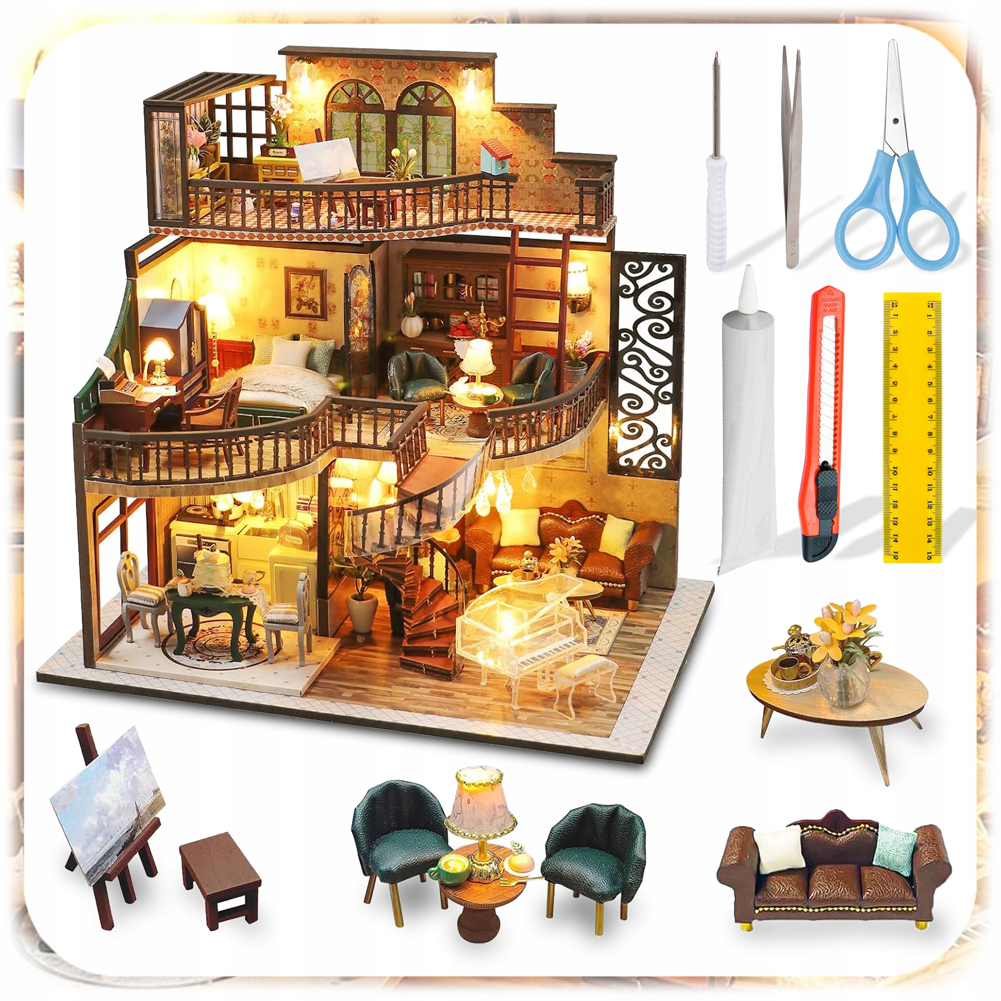 Bogato wyposażony model, pełen szczegółów i naturalnych materiałów, to świetna propozycja dla miłośników projektów DIY, modelarzy i każdego, kto szuka wartościowego zajęcia offline. Pięknie prezentuje się po złożeniu – zwłaszcza wieczorem, gdy światła LED rozświetlają wnętrze.