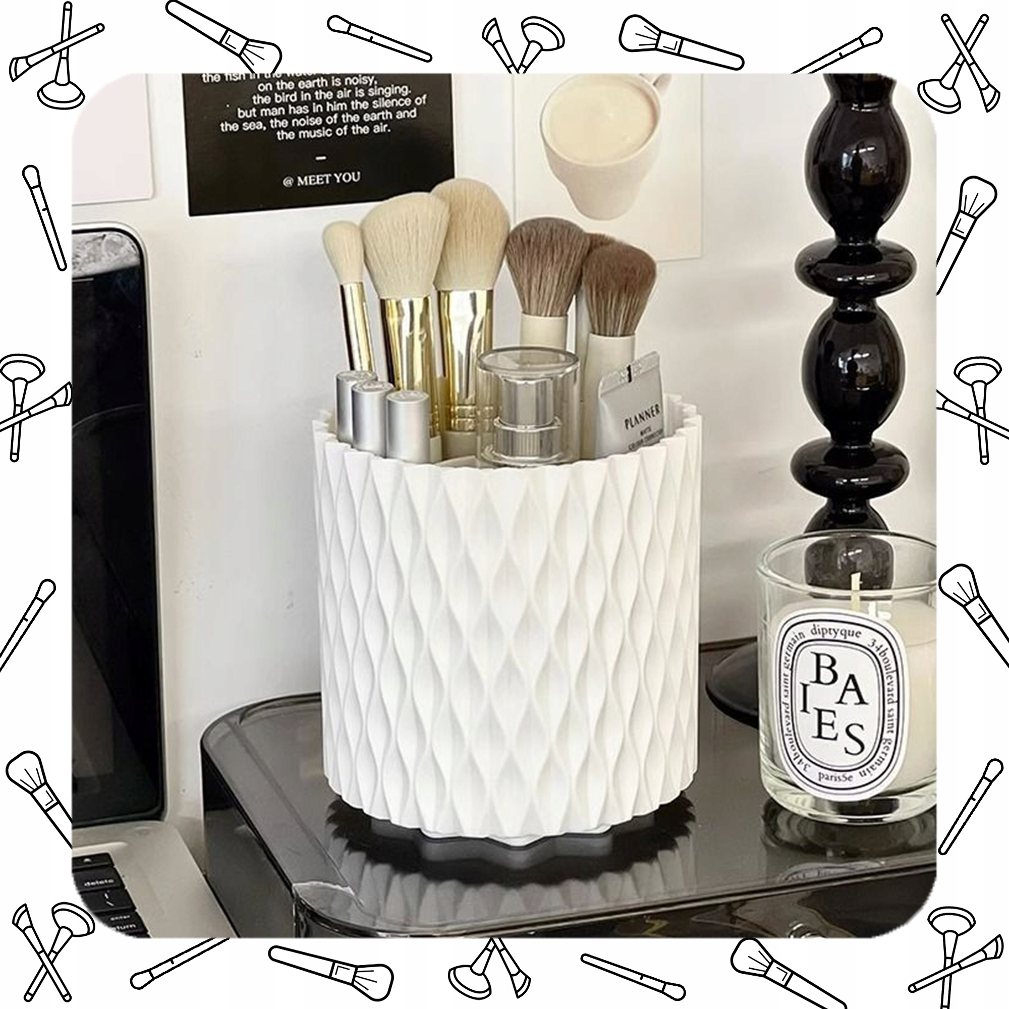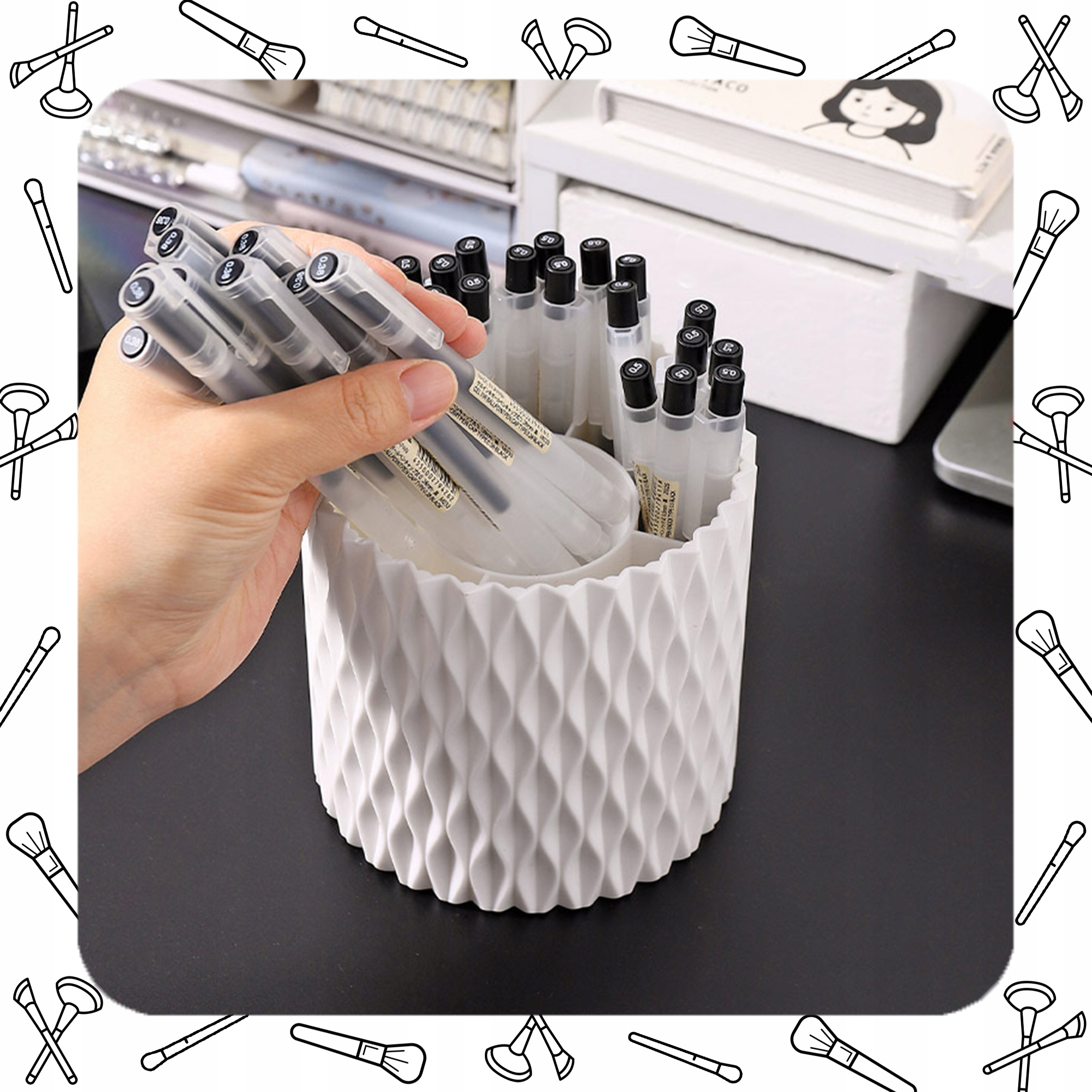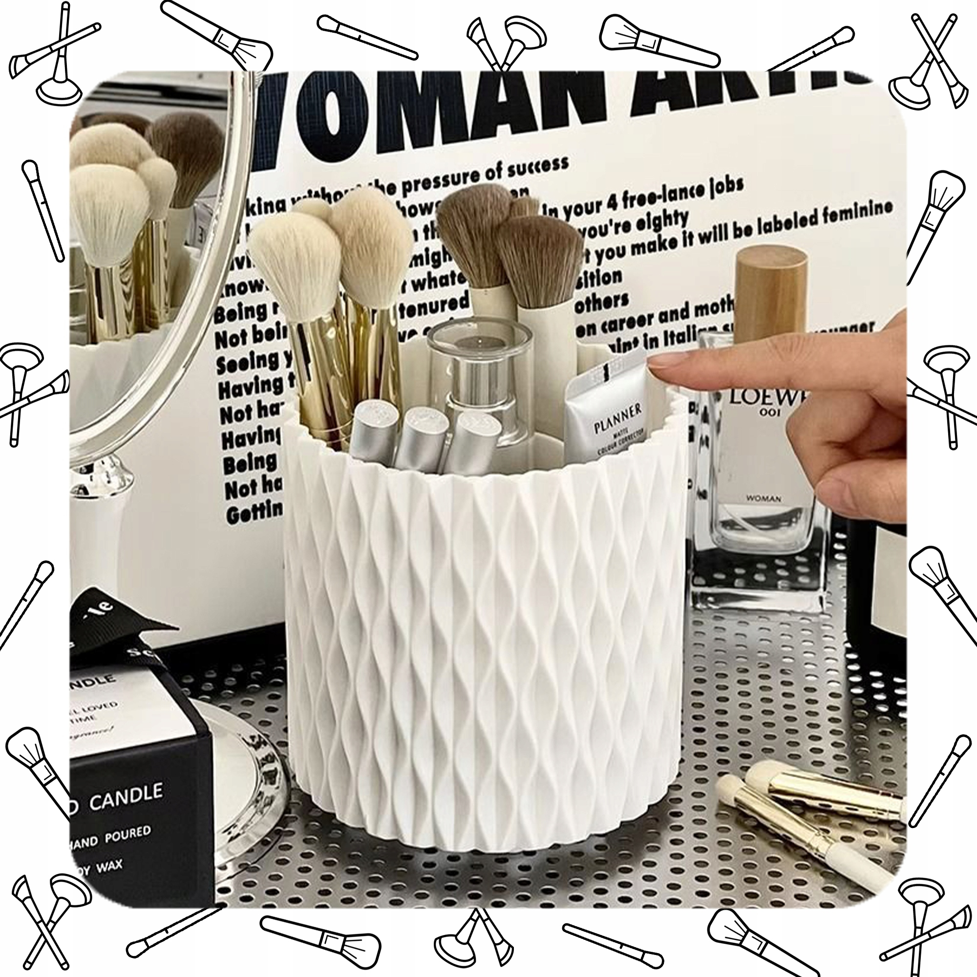 Chcesz mieć wszystkie swoje kosmetyki w jednym miejscu? Nasz organizer to idealne rozwiązanie! Dzięki 5 praktycznym przegródkom łatwo uporządkujesz pędzle, szminki, cienie do powiek i inne kosmetyki. Obrotowa podstawa o 360° zapewnia szybki dostęp do każdego produktu. Wykonany z wysokiej jakości materiałów, będzie służył Ci przez lata.