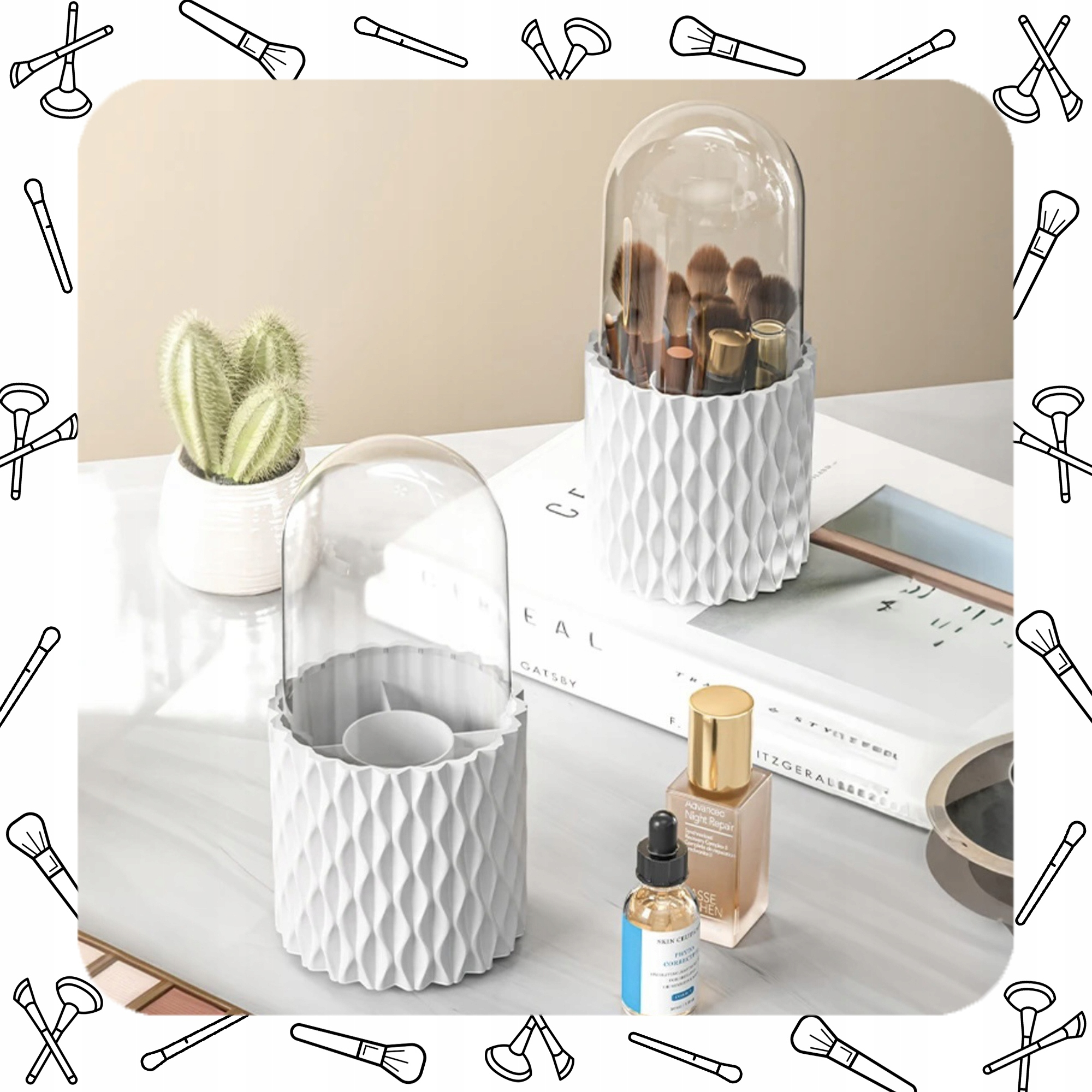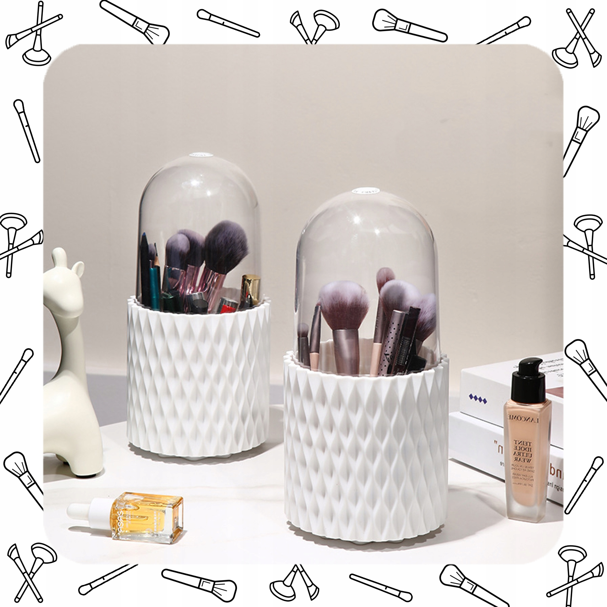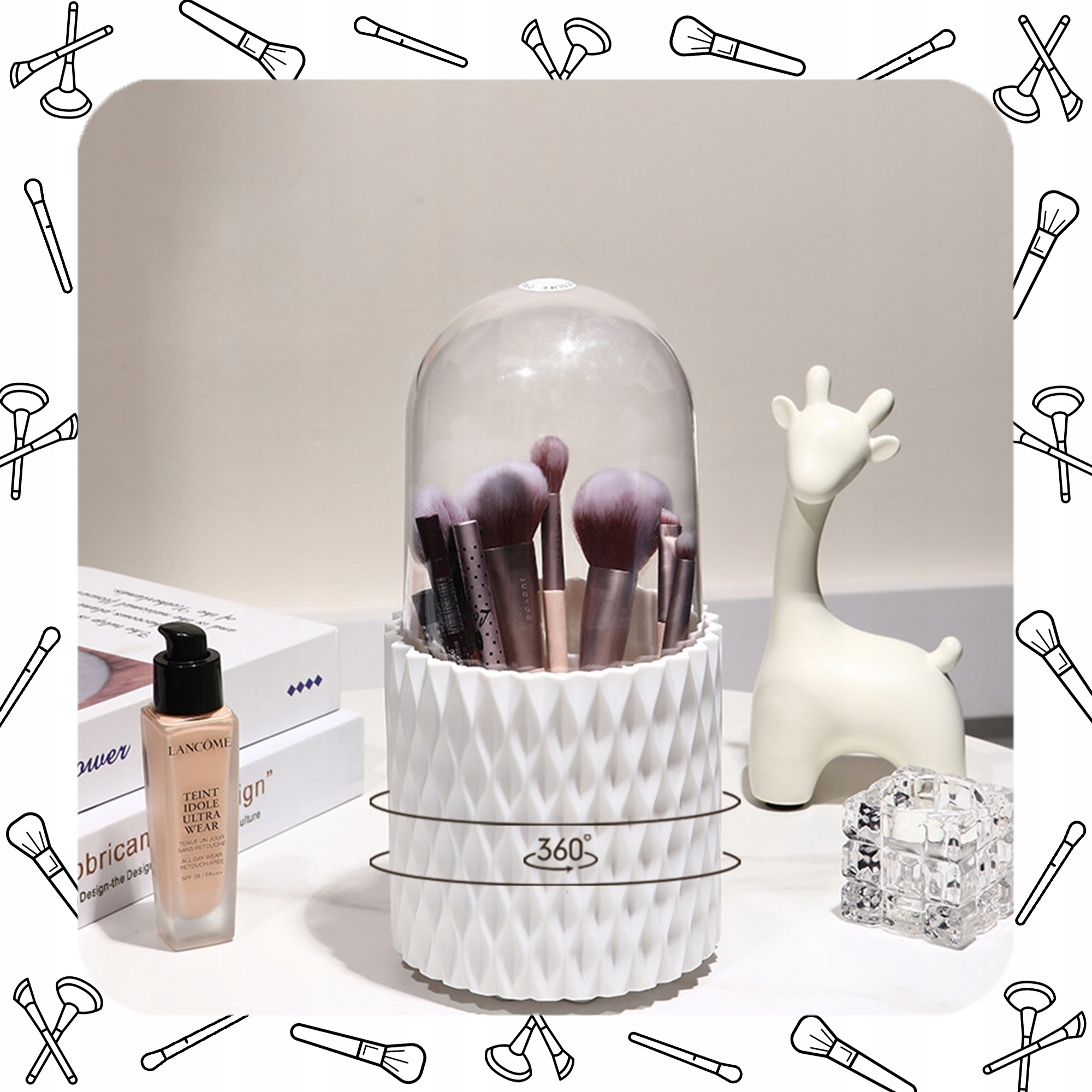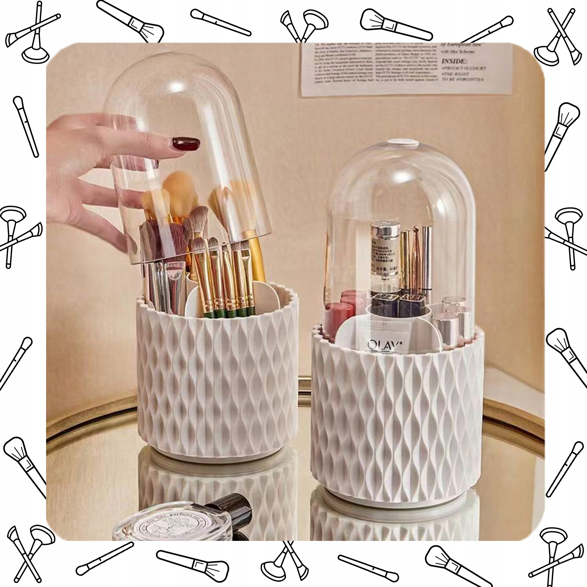 Dzięki innowacyjnej konstrukcji, organizer obraca się płynnie o pełne koło, zapewniając łatwy dostęp do wszystkich Twoich kosmetyków. Nie musisz już więcej przeszukiwać szuflad i kosmetyczek – wszystko masz na wyciągnięcie ręki.