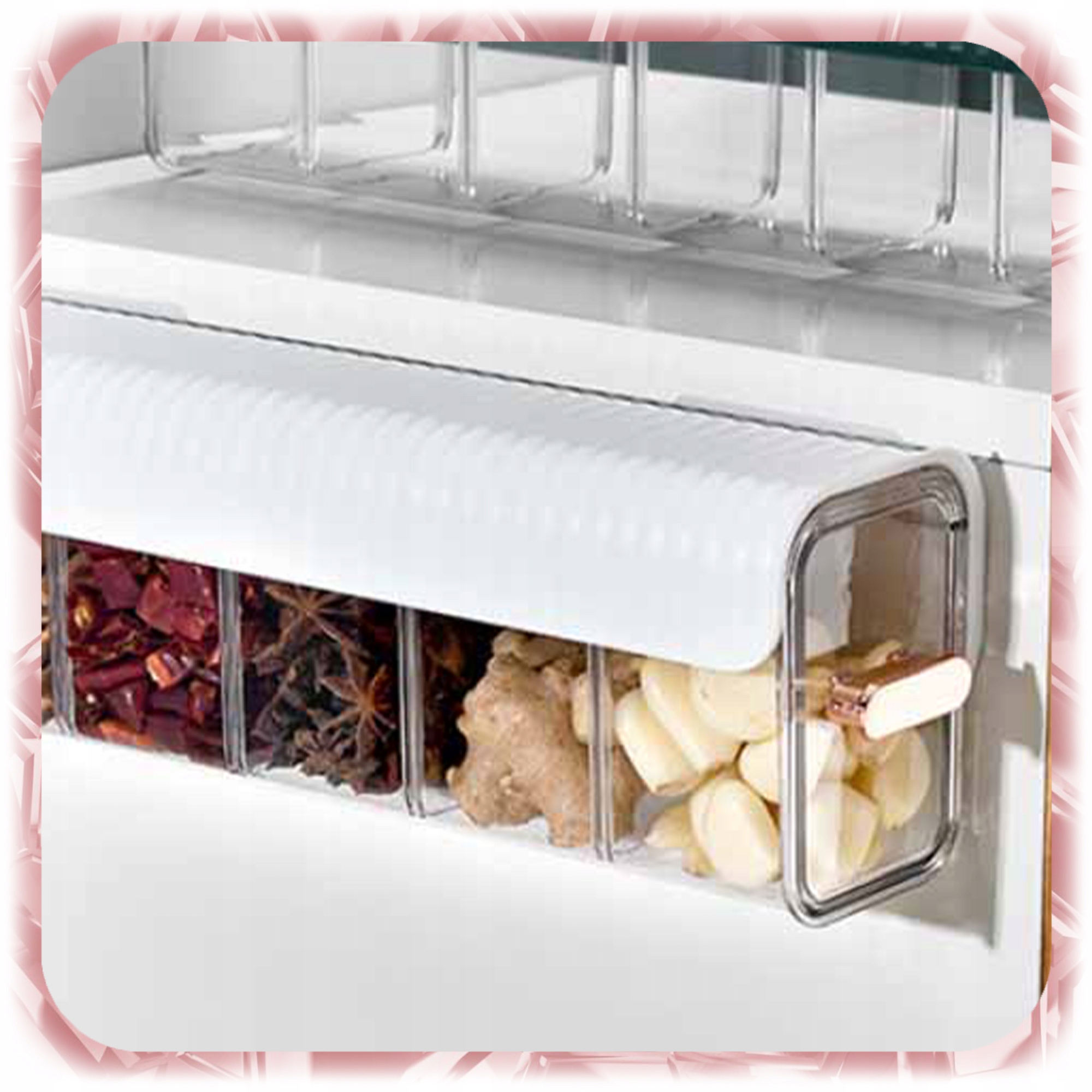 ✔️ Transparentne przegródki pozwalają na szybkie odnalezienie potrzebnych składników, co oszczędza czas i sprawia, że gotowanie staje się przyjemniejsze i bardziej efektywne.