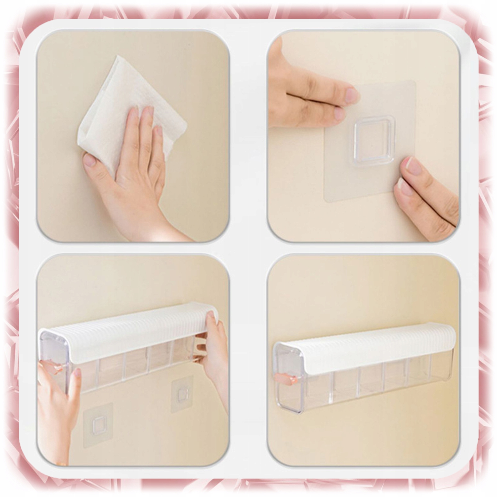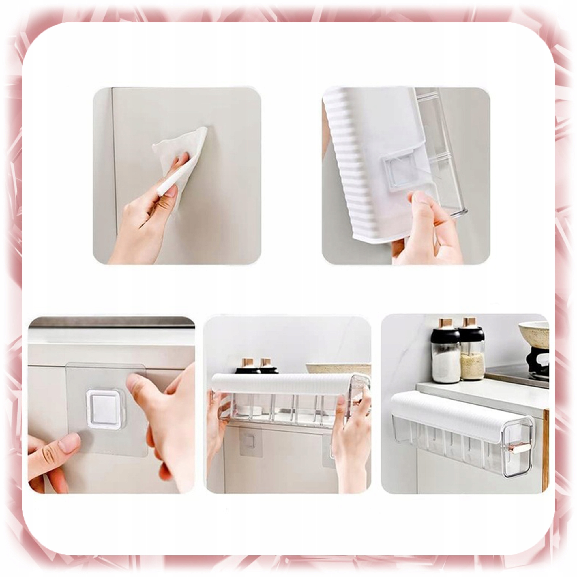 ✔️ Organizer wyposażony jest w samoprzylepne uchwyty, które umożliwiają szybkie i bezproblemowe przymocowanie go do ściany, szafki lub innej gładkiej powierzchni.