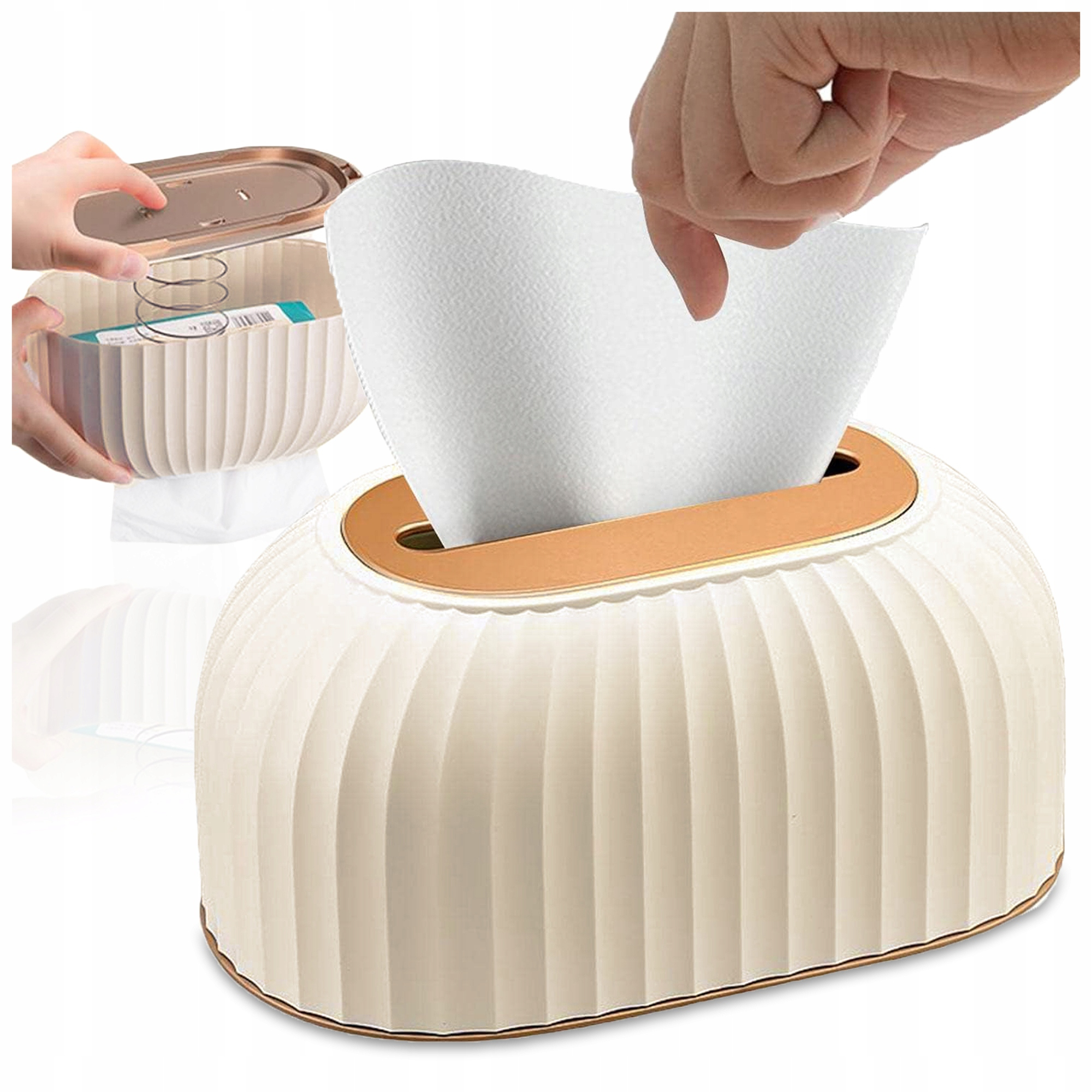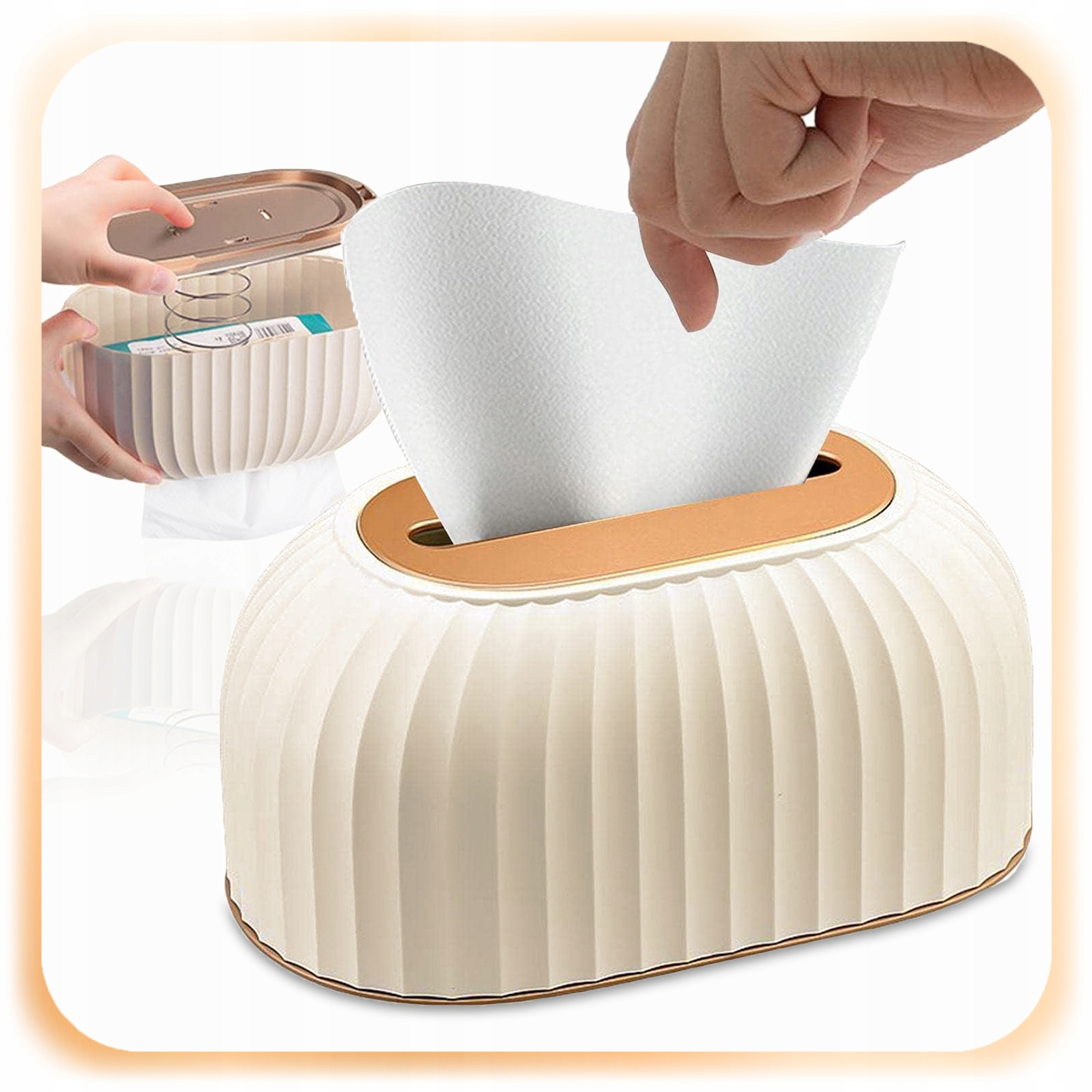 ♾️ Zorganizuj swoją przestrzeń w prosty i estetyczny sposób. Podajnik nie tylko zapewnia łatwy dostęp do chusteczek, ale także pomaga utrzymać porządek, eliminując bałagan związany z nieestetycznymi opakowaniami chusteczek.