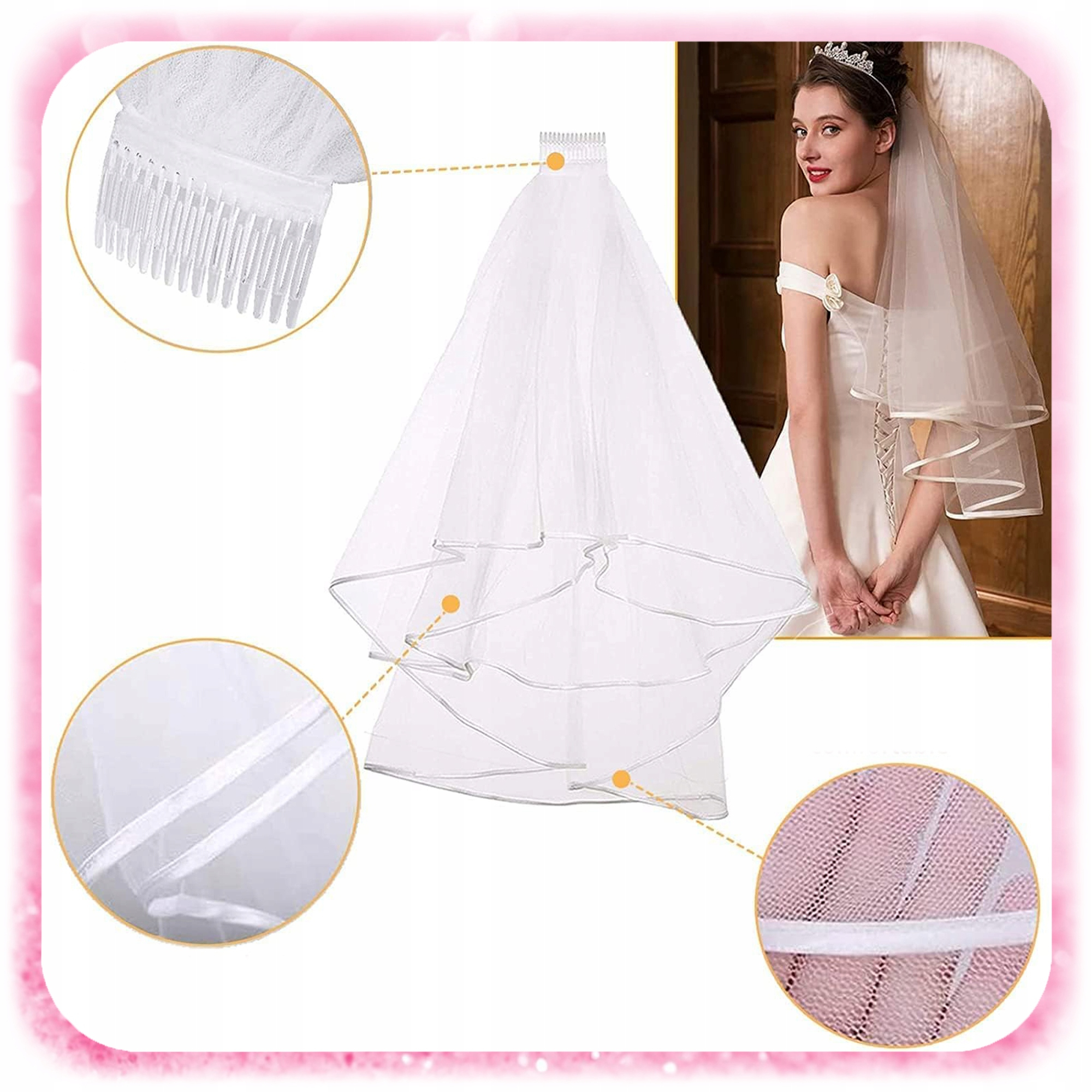✅ 1x Elegancki welon dla przyszłej panny młodej – Klasyczny, biały, lekki i zwiewny. Wygodny w noszeniu, dodaje uroku i sprawia, że przyszła panna młoda wyróżnia się wśród gości.