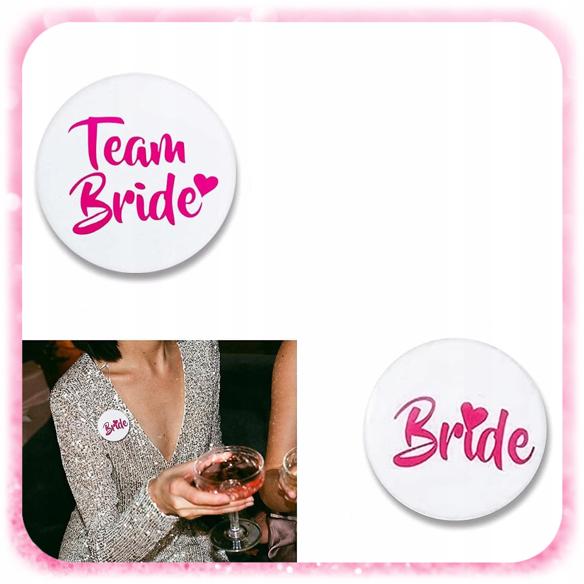 ✅ 12x Przypinki: 1x "Bride", 11x "Team Bride"