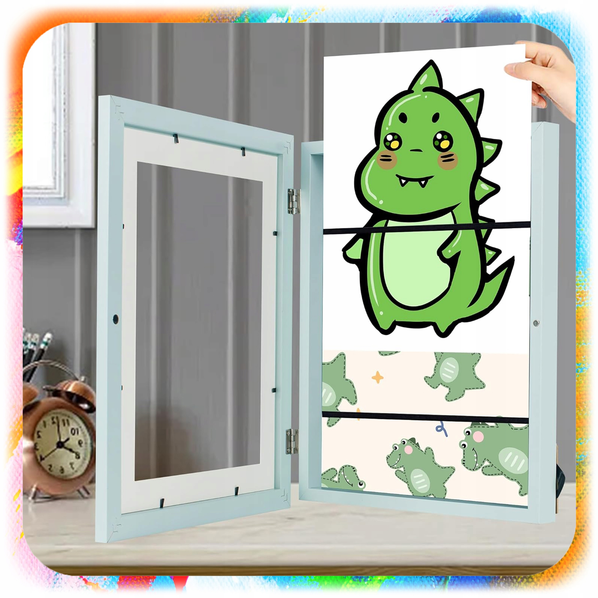 ✅ Zdecydowanie tak – ramka to świetny pomysł na prezent z okazji urodzin, Dnia Dziecka czy świąt. Motywuje do tworzenia i porządkuje przestrzeń dziecka.