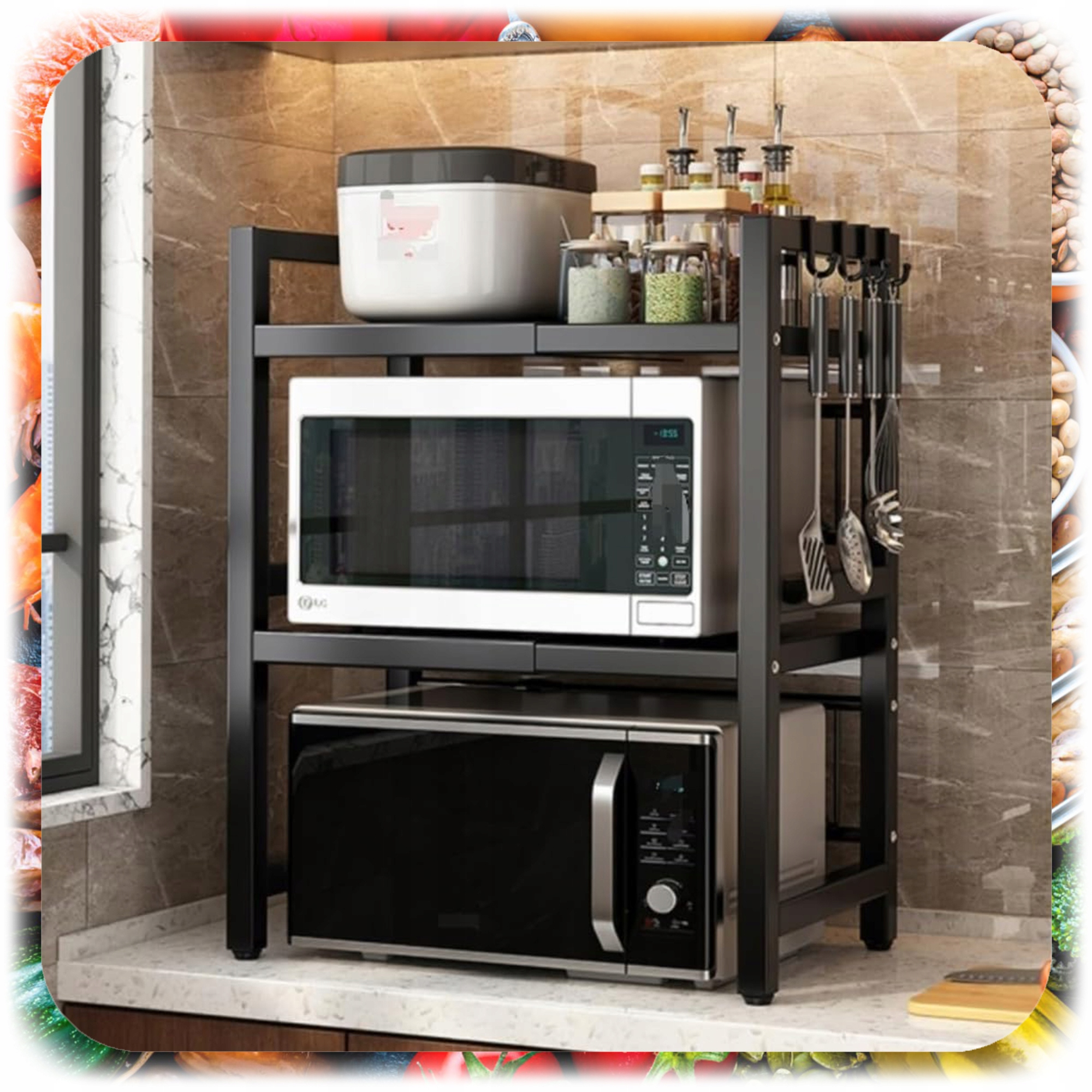 Szukasz sprytnego sposobu na uporządkowanie kuchennego blatu? Ta 2-poziomowa półka pod mikrofalówkę pomoże Ci zapanować nad chaosem i odzyskać przestrzeń roboczą bez konieczności montowania dodatkowych szafek. Stabilna, metalowa konstrukcja, regulowana szerokość i nowoczesny wygląd sprawiają, że idealnie sprawdzi się w każdej kuchni – zarówno tej nowoczesnej, jak i klasycznej.