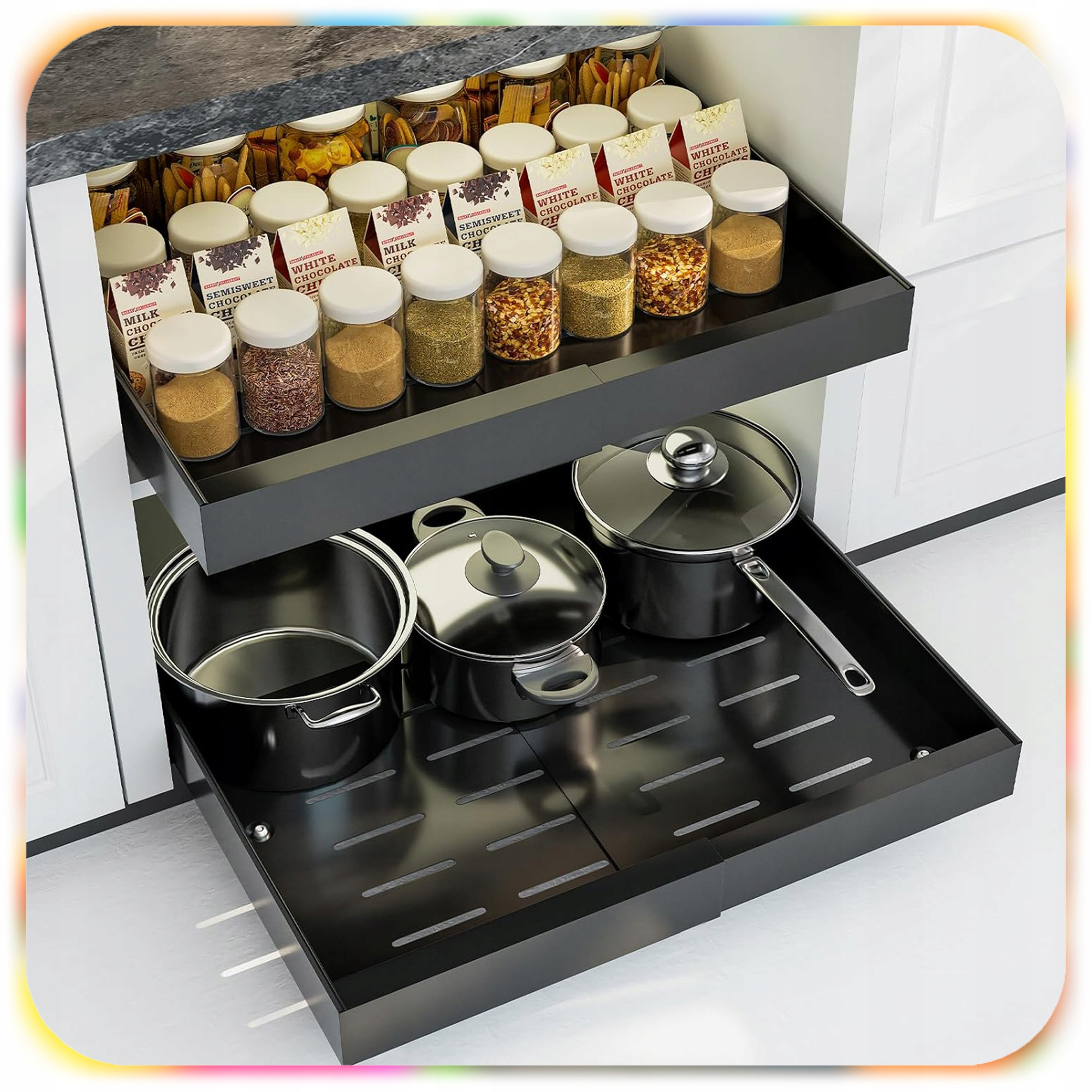 ✔️ Idealna pod zlewem, nad zapasami, przy kosmetykach lub środkach czystości – pomaga uporządkować wszystko, co do tej pory nie miało swojego miejsca.