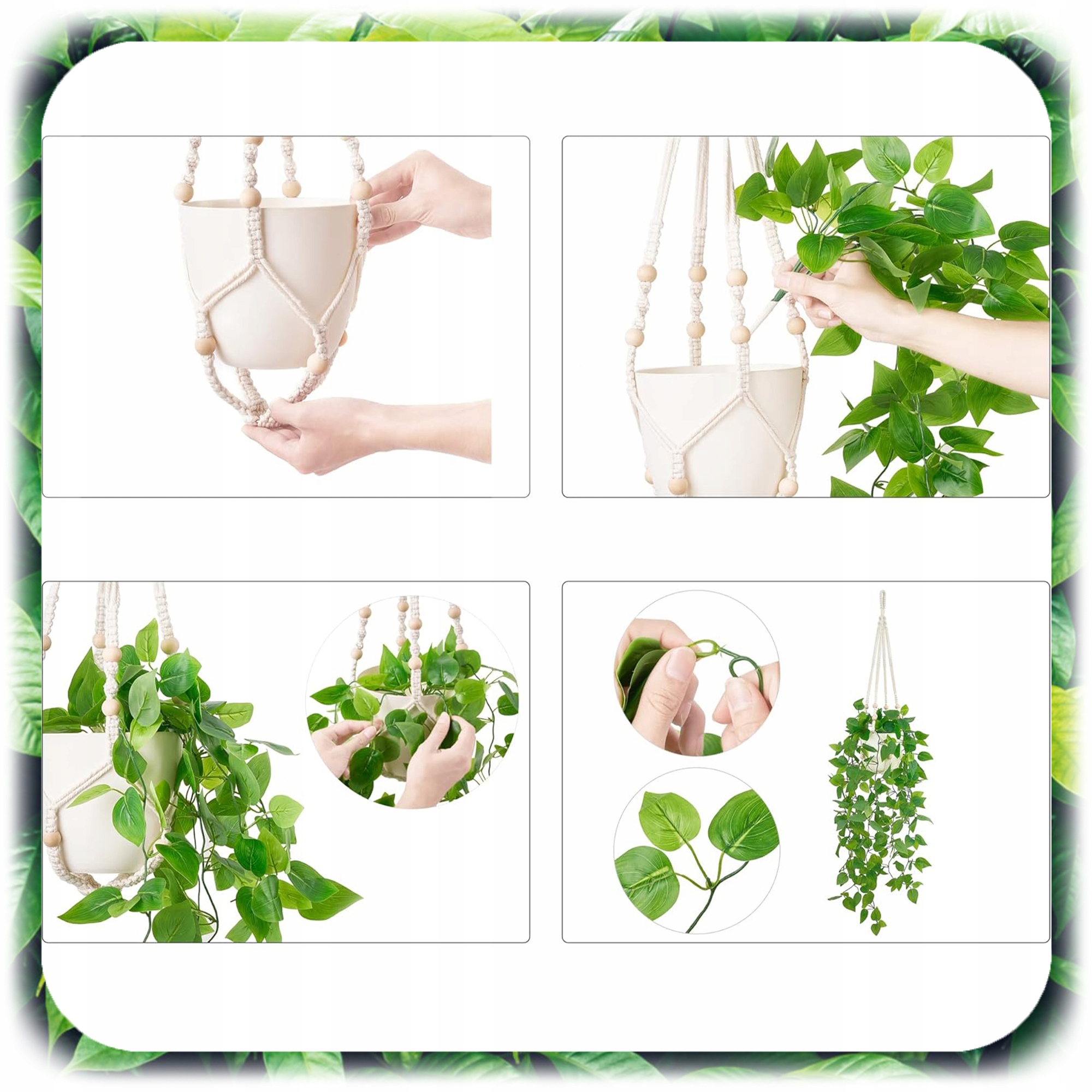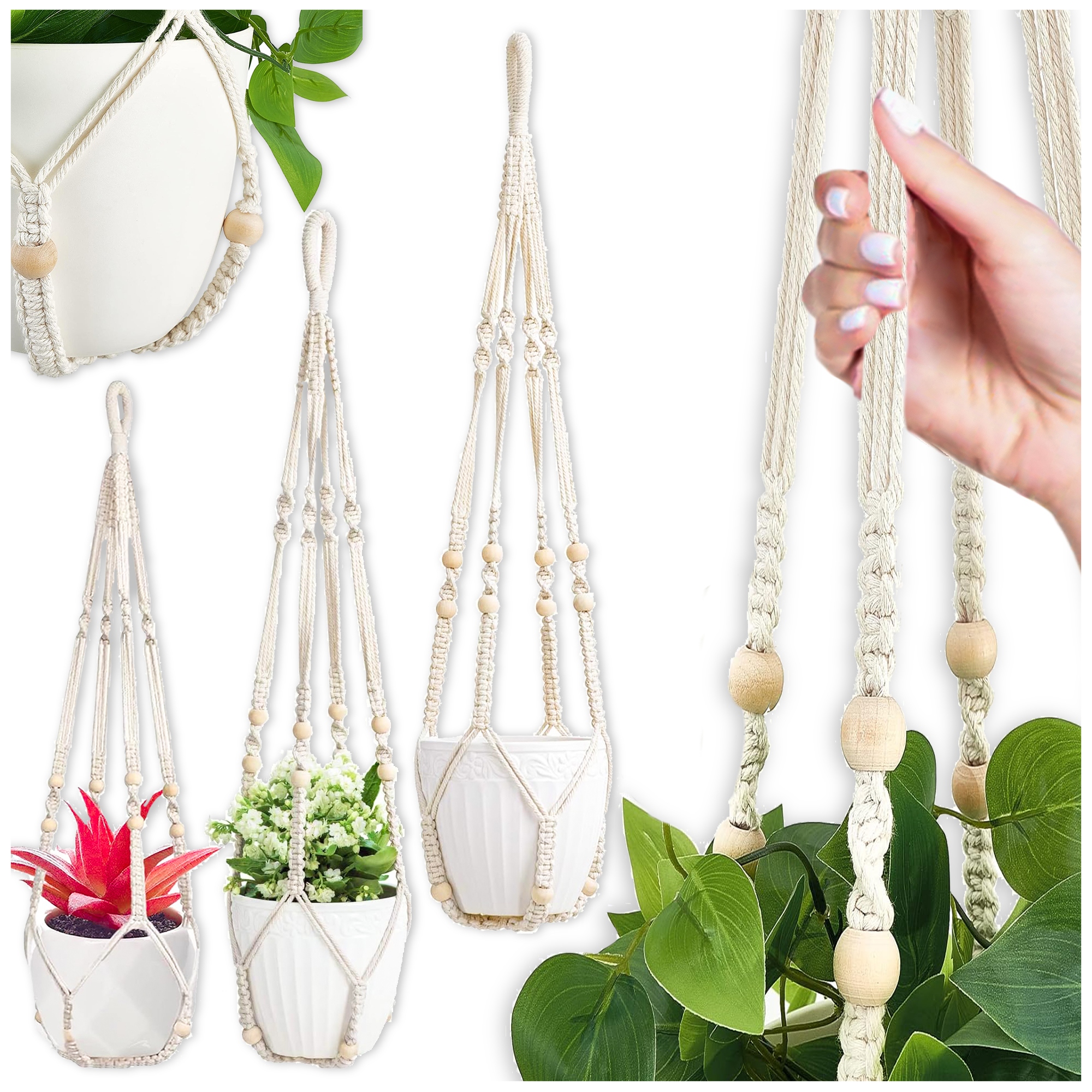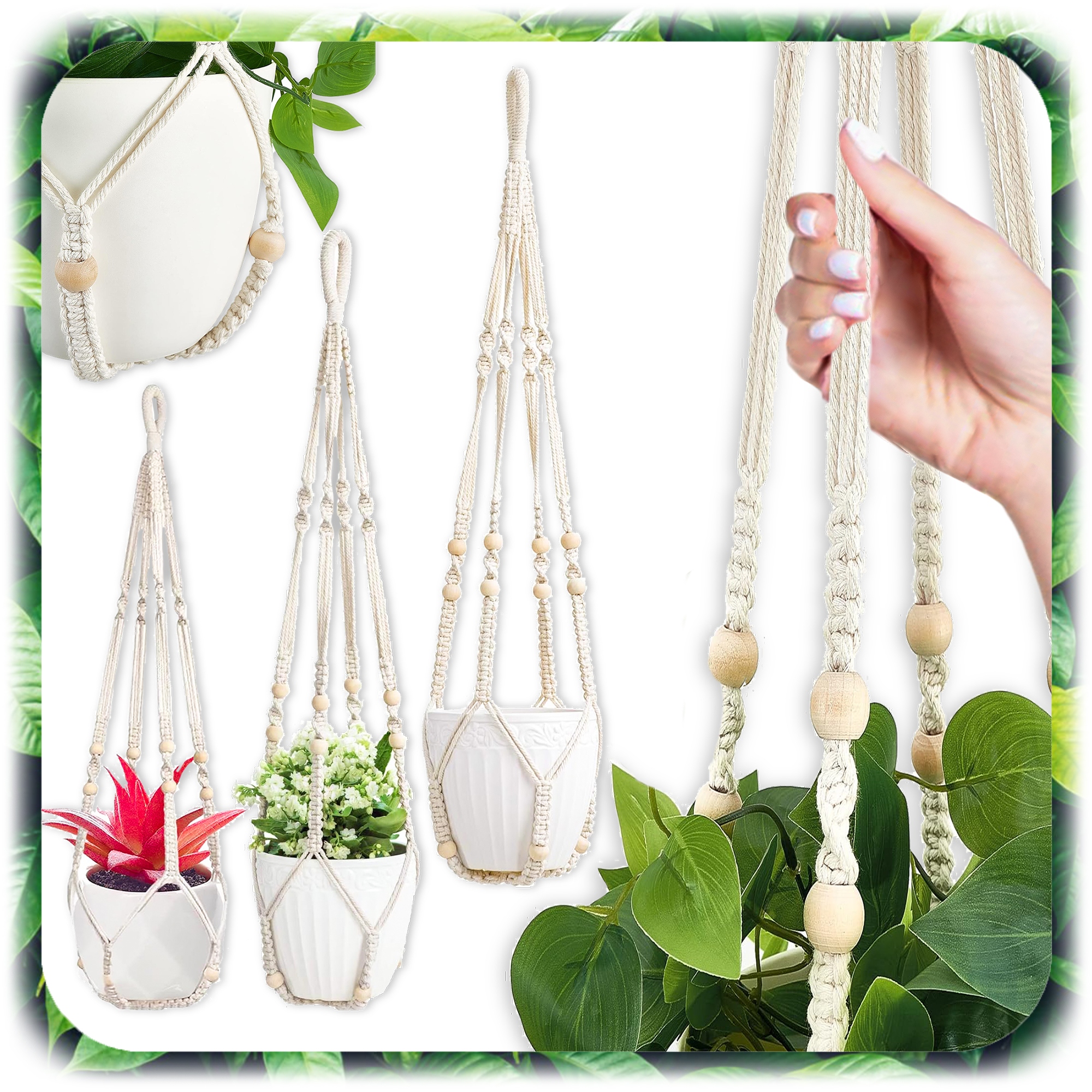 Jeszcze więcej stylu i harmonii w Twoim wnętrzu! W komplecie otrzymujesz trzy piękne, ręcznie plecione kwietniki, które możesz zawiesić razem, tworząc efektowną kompozycję, lub rozdzielić w różnych miejscach domu. Dzięki zestawowi 3 sztuk stworzysz spójną, naturalną aranżację w stylu boho – idealną do salonu, sypialni, balkonu czy tarasu.