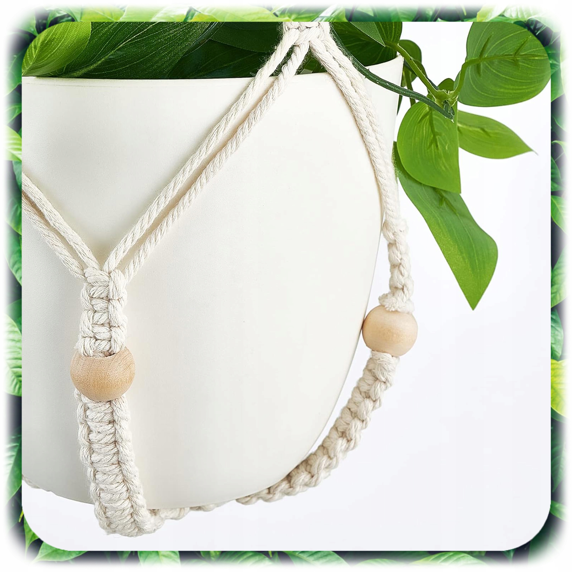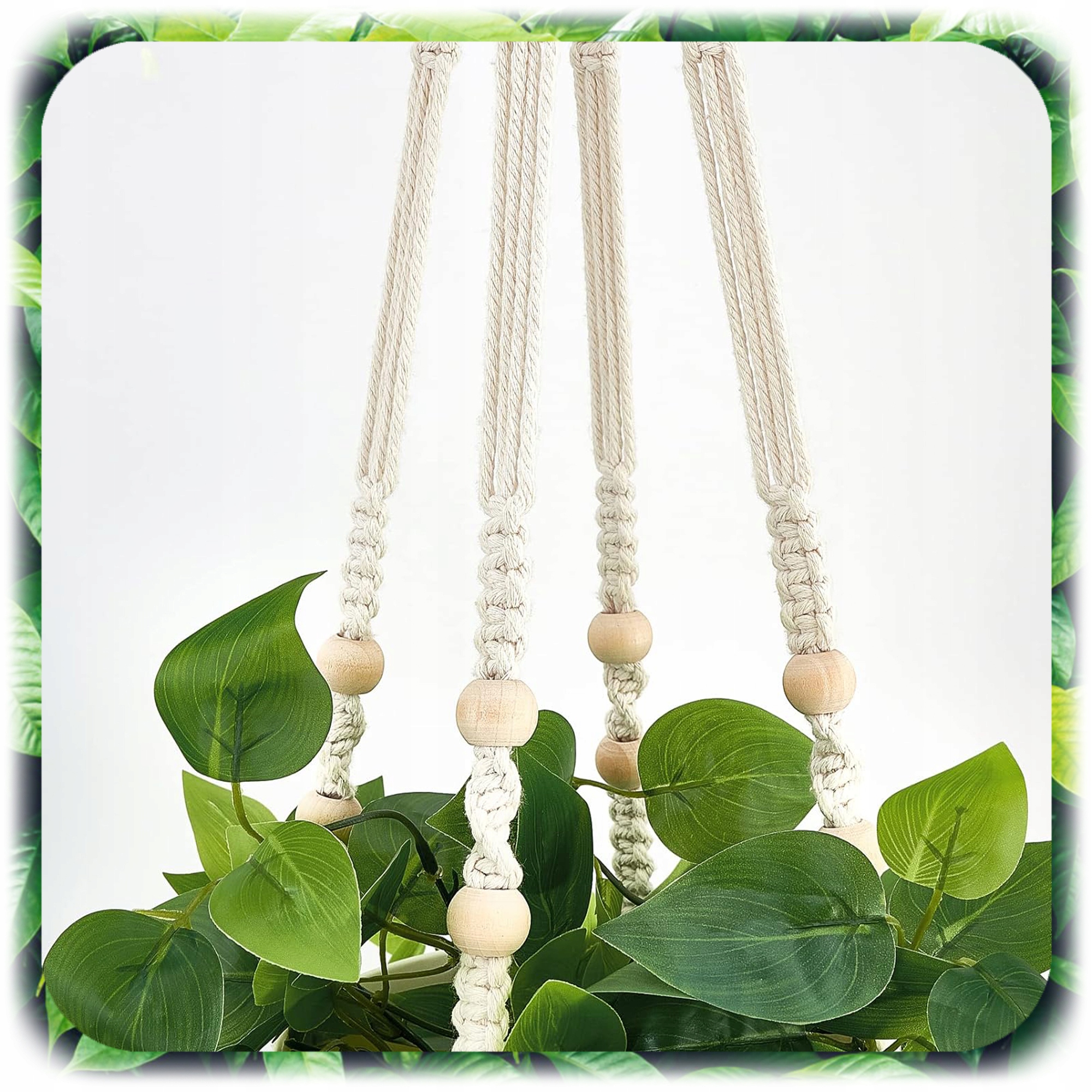 Kwietnik został wykonany z mocnej, bawełnianej liny ozdobionej drewnianymi koralikami, co zapewnia trwałość i bezpieczeństwo Twoich roślin. Wystarczy jeden haczyk, by zawiesić go na suficie, ścianie czy barierce. Stabilna konstrukcja utrzymuje doniczkę w równowadze i pozwala cieszyć się piękną ekspozycją kwiatów bez skomplikowanych instalacji.
