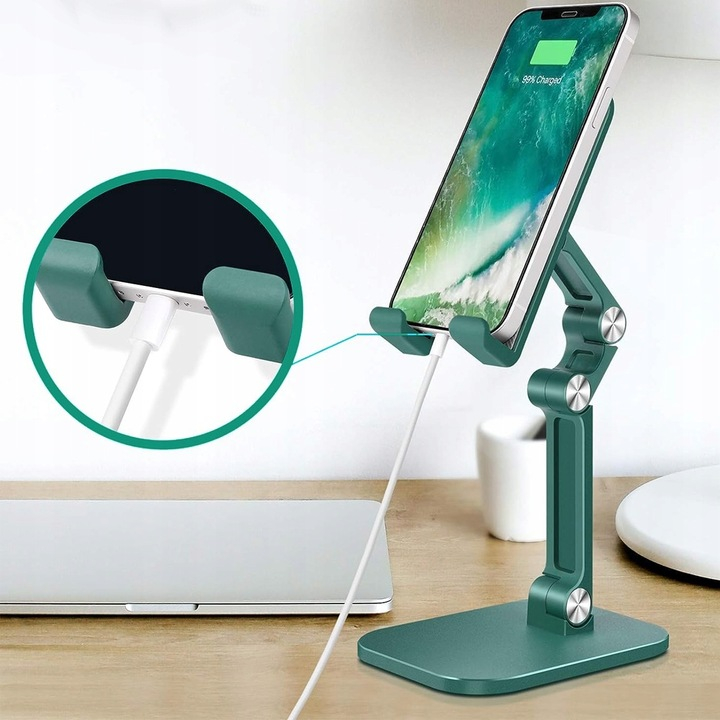 ✅ Tak – stojak został zaprojektowany tak, aby umożliwić podłączenie kabla ładowania nawet w trakcie korzystania z podstawki.